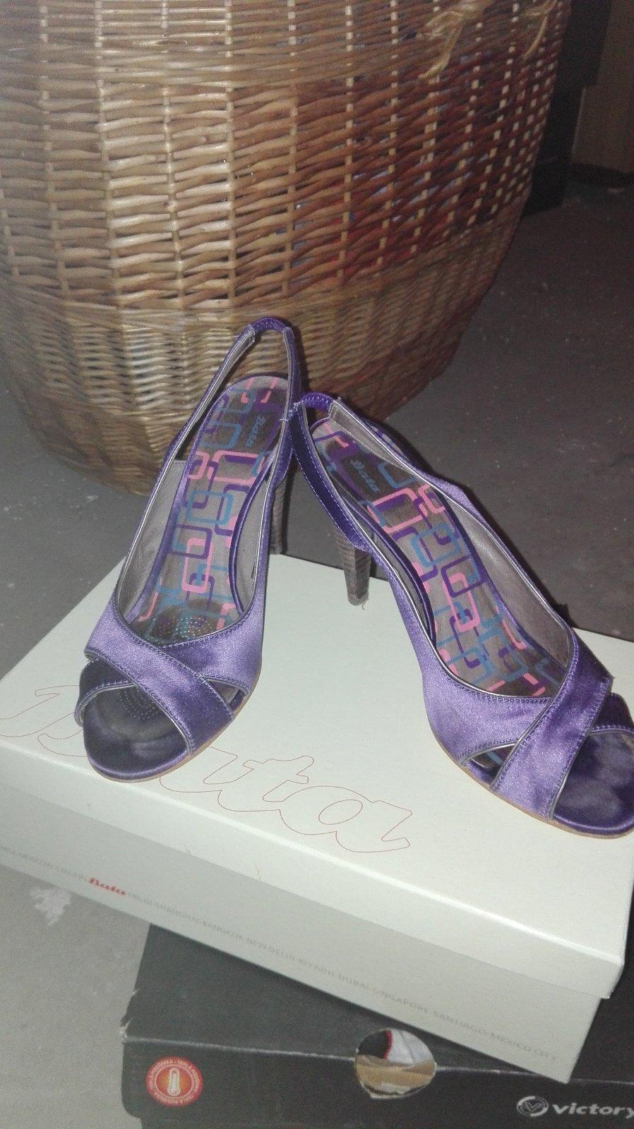 Sandale 3x obute. Kupene u Batu. Vnutorna dlžka cela fialova čast 24cm, podražka 25,5cm.
