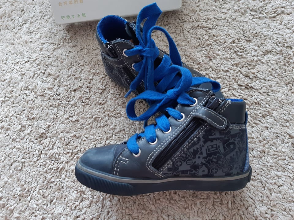 Topánky GEOX B KIWI, veľkosť 23. Po 1 dieťati, nosené na striedačku s inými. Vo veľmi dobrom stave, iba na špičkách vidieť pár šuchnutí. Na šnúrky aj/alebo zips.