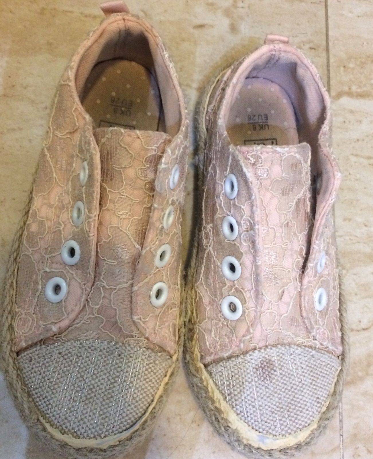 S viditelnymi znamkami nosenia a odreninkou na lavej pate( vidno na fotke) ale stale pekne, funkcne a urcite este posluzia🙂velkost 26/17,5cm teda vhodne na nozicku 16,5-17cm