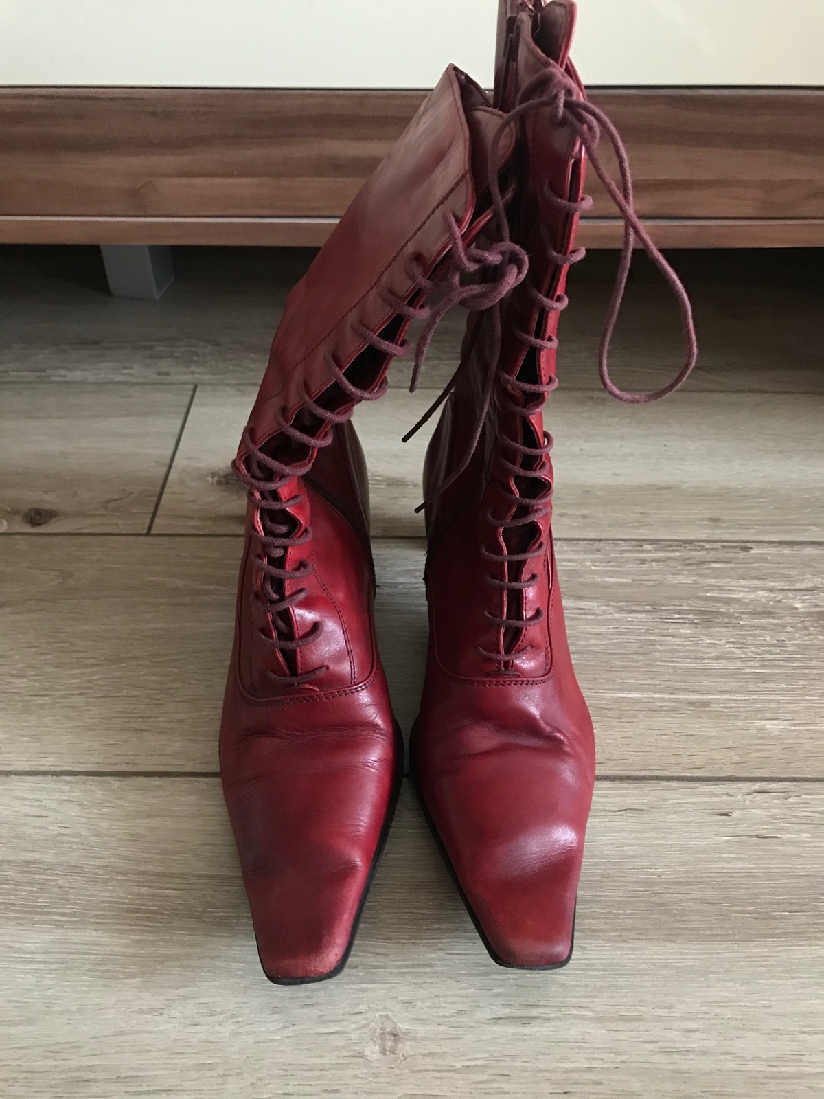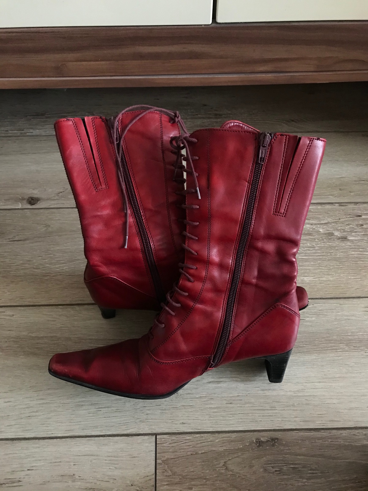 Predam cervene kotnikove cizmicky, 1x obute. Dovod: zla velkost. Potrebujem o cislo mensie. Preto odporucam cizmicky zenam s velkostou nohy 38. Su bez poskodenia, pohodlne. Povodna cena bola 20e.