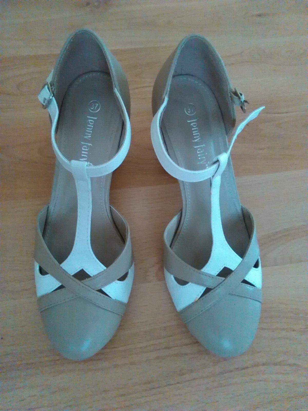 Predám takmer nové topánky,dva razy obuté,bežové s kombináciou bielej,opätok 7 cm,kúpené v CCC
