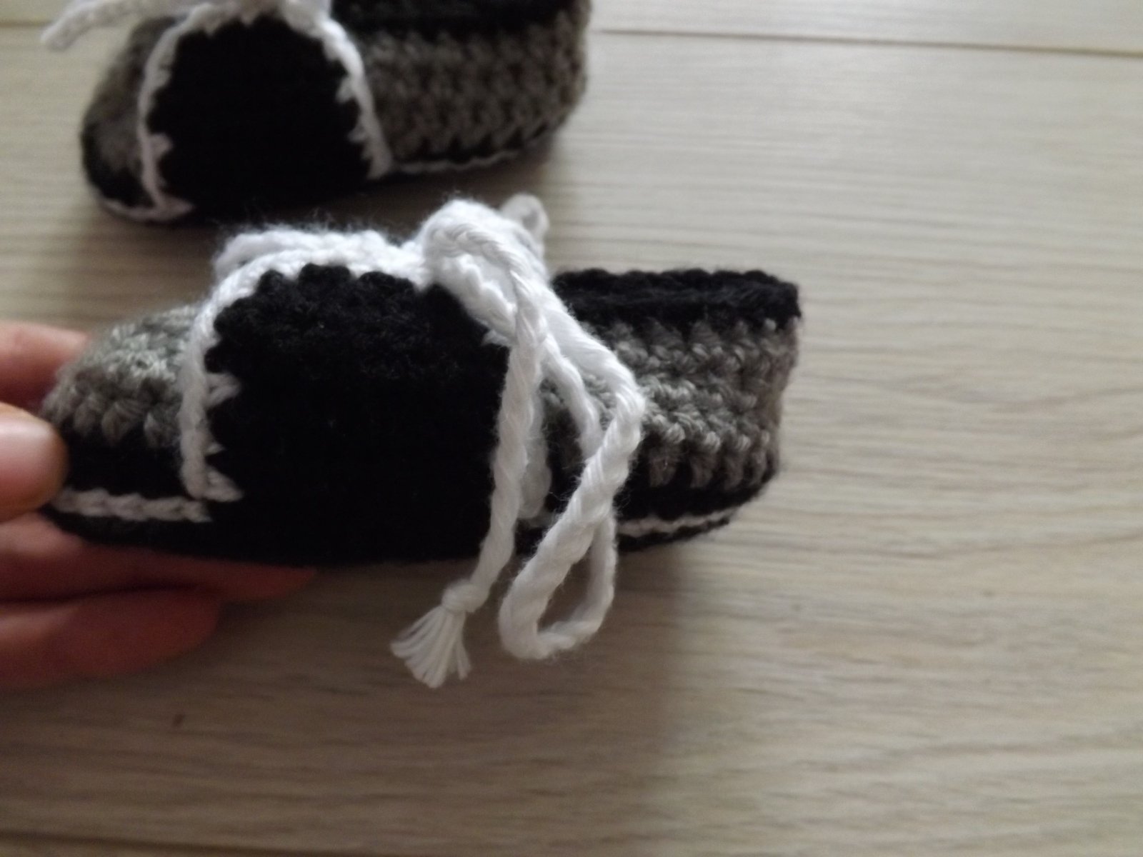 Šnúrovacie papučky boli háčkované z jemnej detskej vlny.