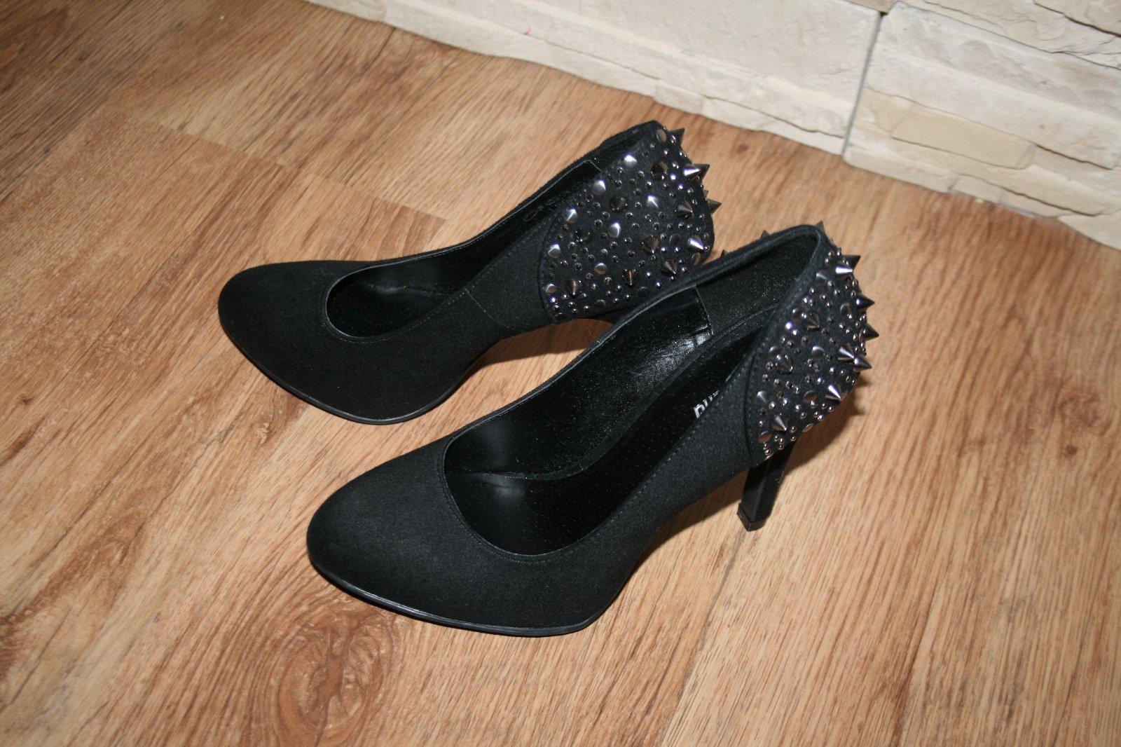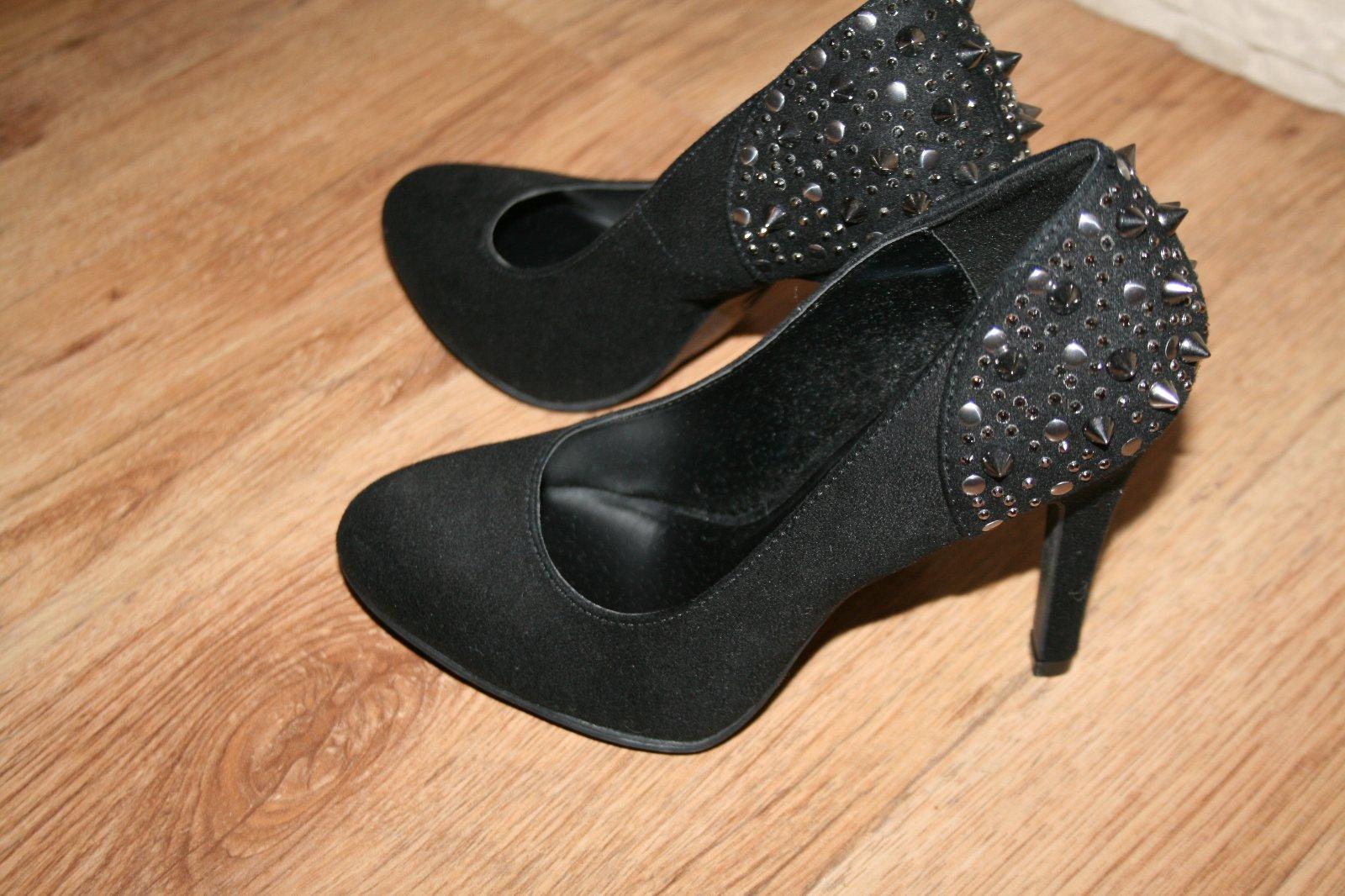Čierne vybíjané lodičky, obuté hodinu vo vnútri, veľmi efektný a štýlový dizajn, rýchla kúpa a a žiaľ , tlačia ma. cena: 6 EUR, pôvodná cena o mnoho vyššia. O vymenu prosim nemam zaujem.