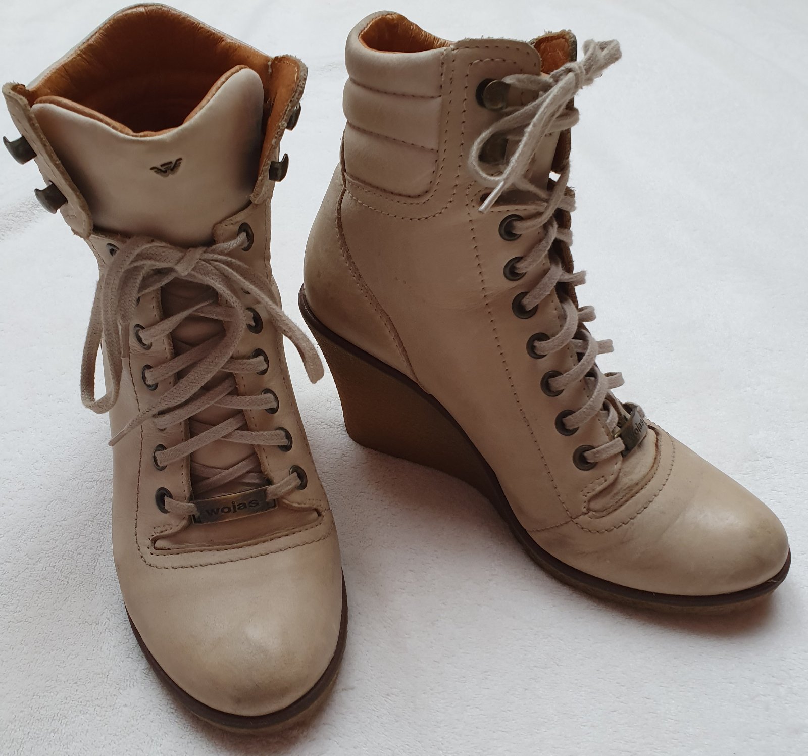 Kožené kotníky Wojas, veľkosť 37, obuté 3krát, nesadla mi veľkosť, vnútorná dĺžka 23,5- 24cm, PC: 84,90e, pri kúpe nový darček