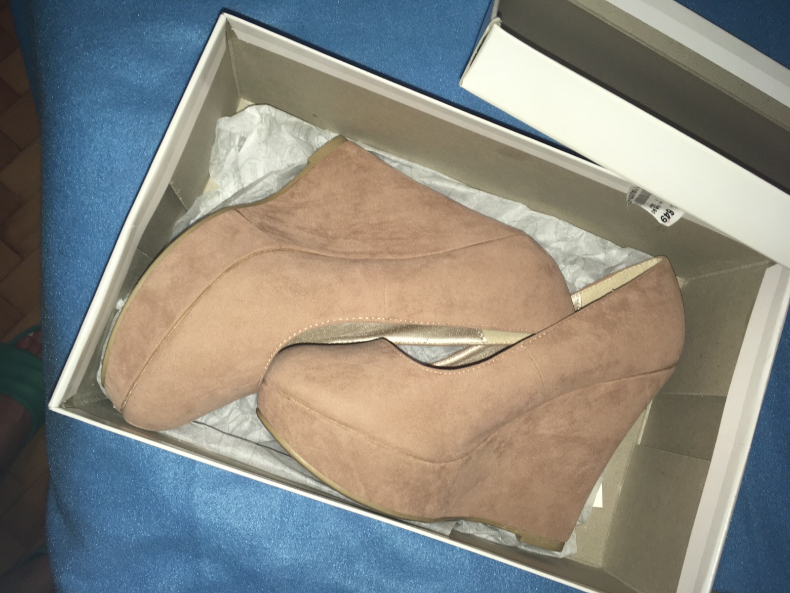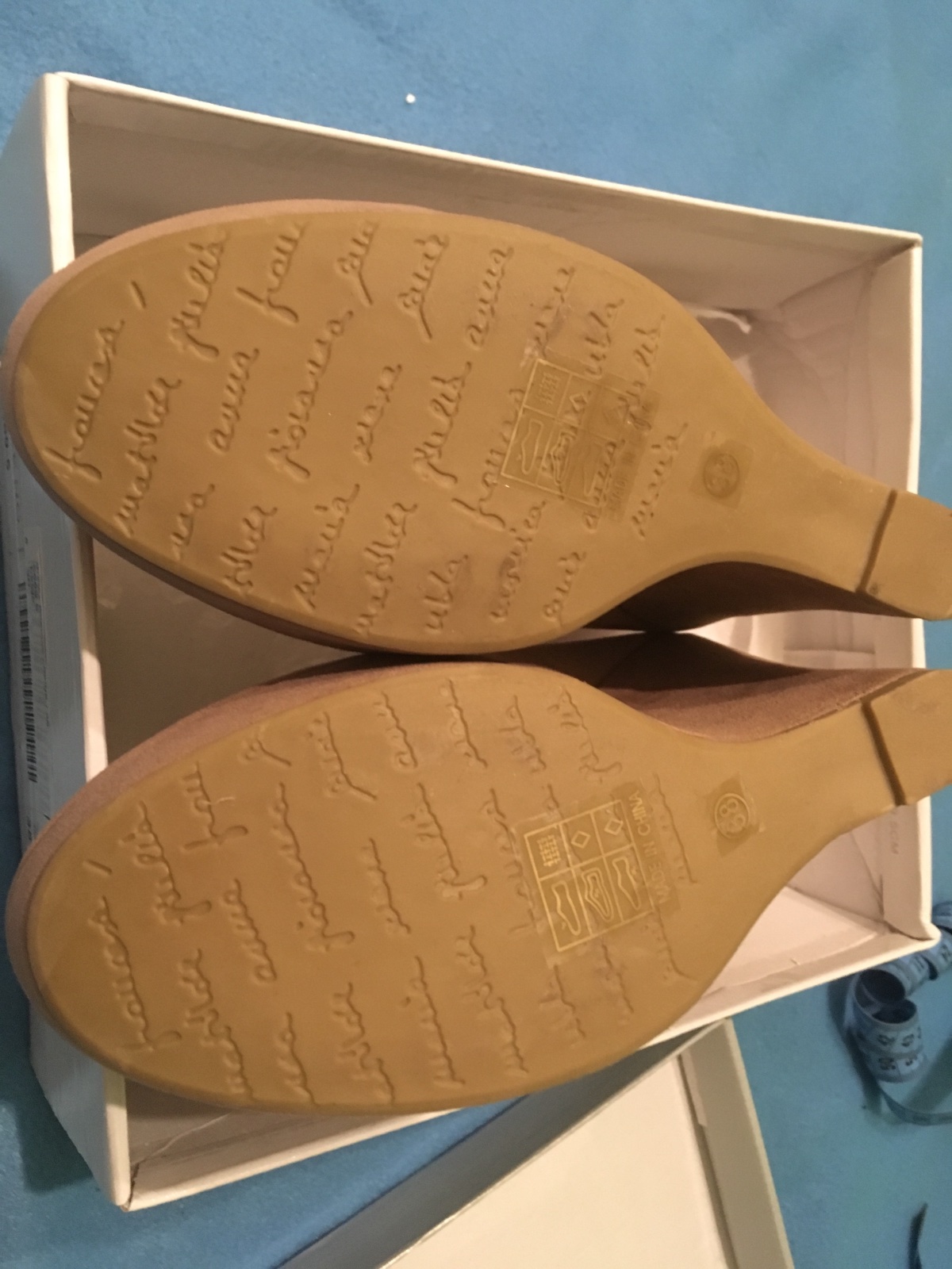 Predám lodičky na platforme, veľkosť 38,nové, nenosené. Výška podpätku 12 cm a platforma 3 cm. Pekne predĺžia nohy, univerzálna bežová farba, ktorá sa hodí ku všetkému. Vnútorná dĺžka 24 cm.