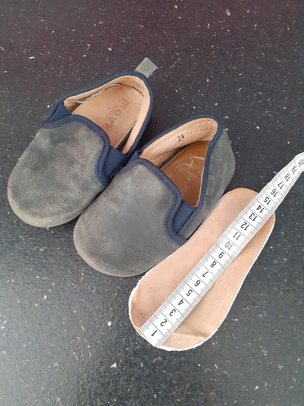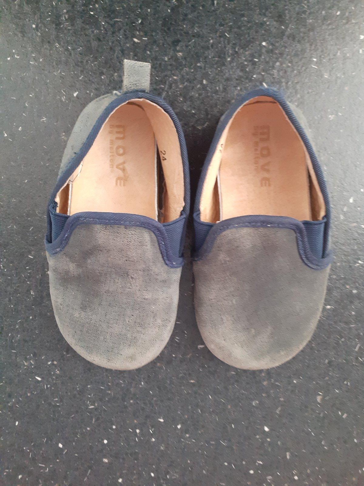 Predám kožené papučky zn. MOVE. Unikátny dizajn dánskej značky MOVE by Melton a protišmyková gumená podrážka s výbornou ohybnosťou sú zárukou vysokej pohodlnosti, pričom je chôdza v nich identická s chôdzou na boso a tak zlepšujú pohybovú zdatnosť a napomáhajú zdravému vývinu detských nôh. Papučky MOVE by Melton sú výnimočné okrúhlou a veľmi širokou špicou. Vhodné na nosenie v interiéri aj exteriéri. Vrch topánky je pokrytý kožou. Podšívka je z kože. Topánočky sú vhodné na širšie nôžky. Bežné známky nosenia. Veľkosť 24, vnútorná dĺžka 14,5 cm.