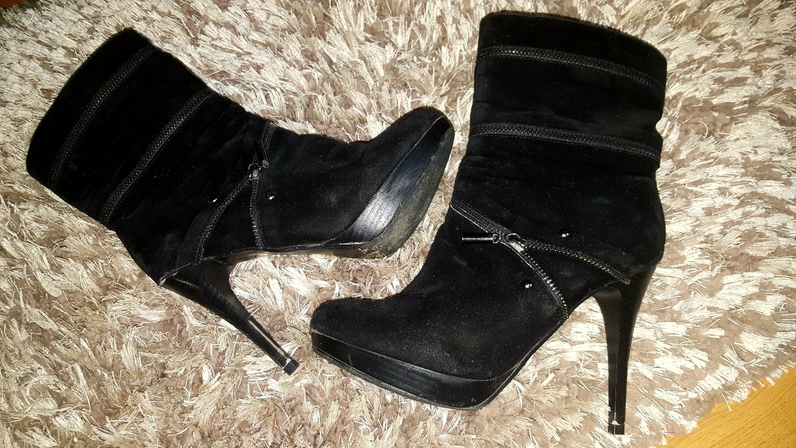 čierne topanky , su nosene , no určite ešte narobia paradu ...vyška opätku je 8 cm .... ako vidite je hrubši , teda ja pevnejší .... a vnutorna dlžka je 25 cm ... ako píšem aby nedošlo k nedorozume...