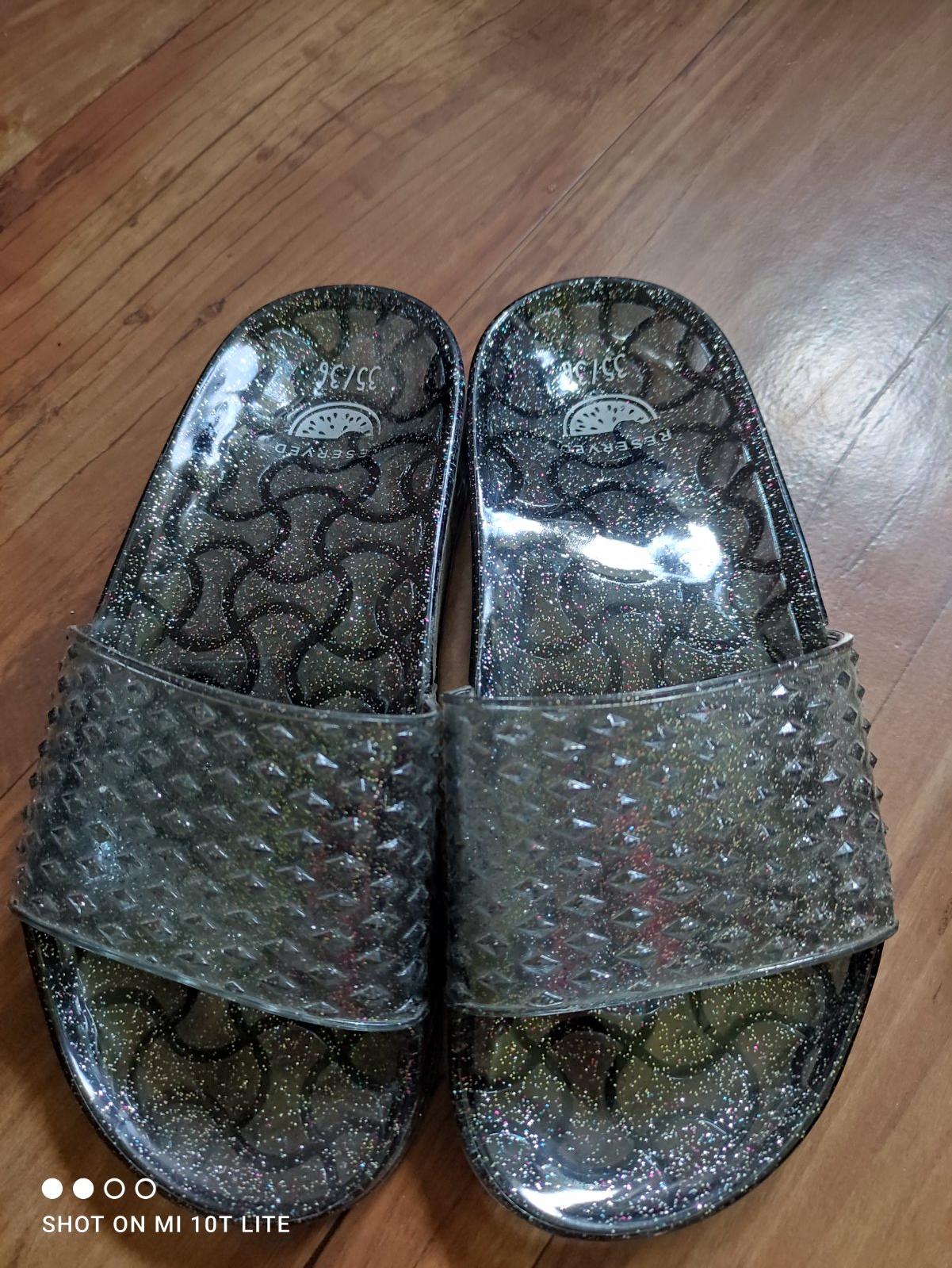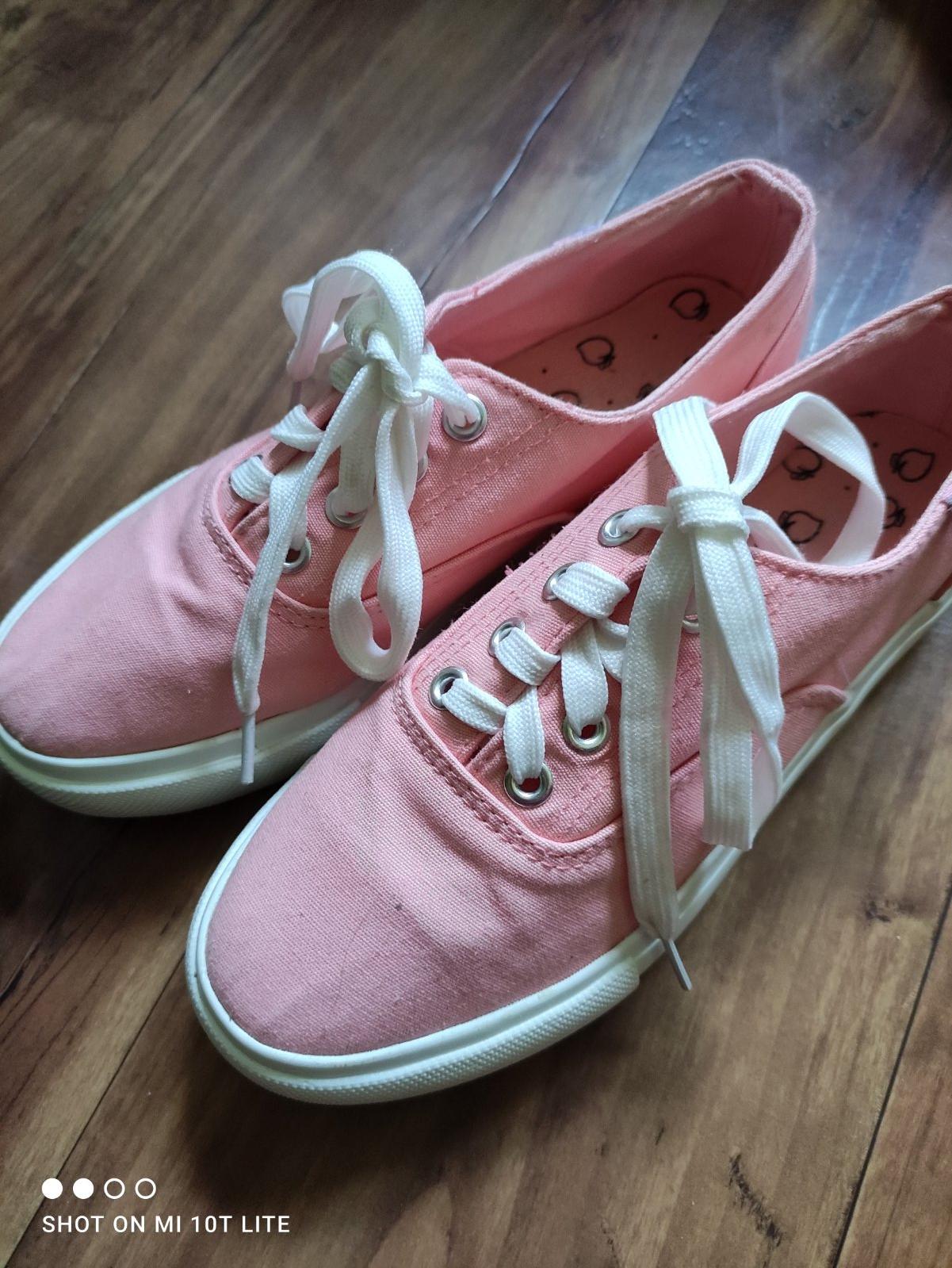 Plátené dievčenské tenisky, obuté len raz, sú ako nové. Pridávam k nim šľapky, nové, nenosené. Vnútro tenisiek 22,3 cm. Šľapky 22,2cm