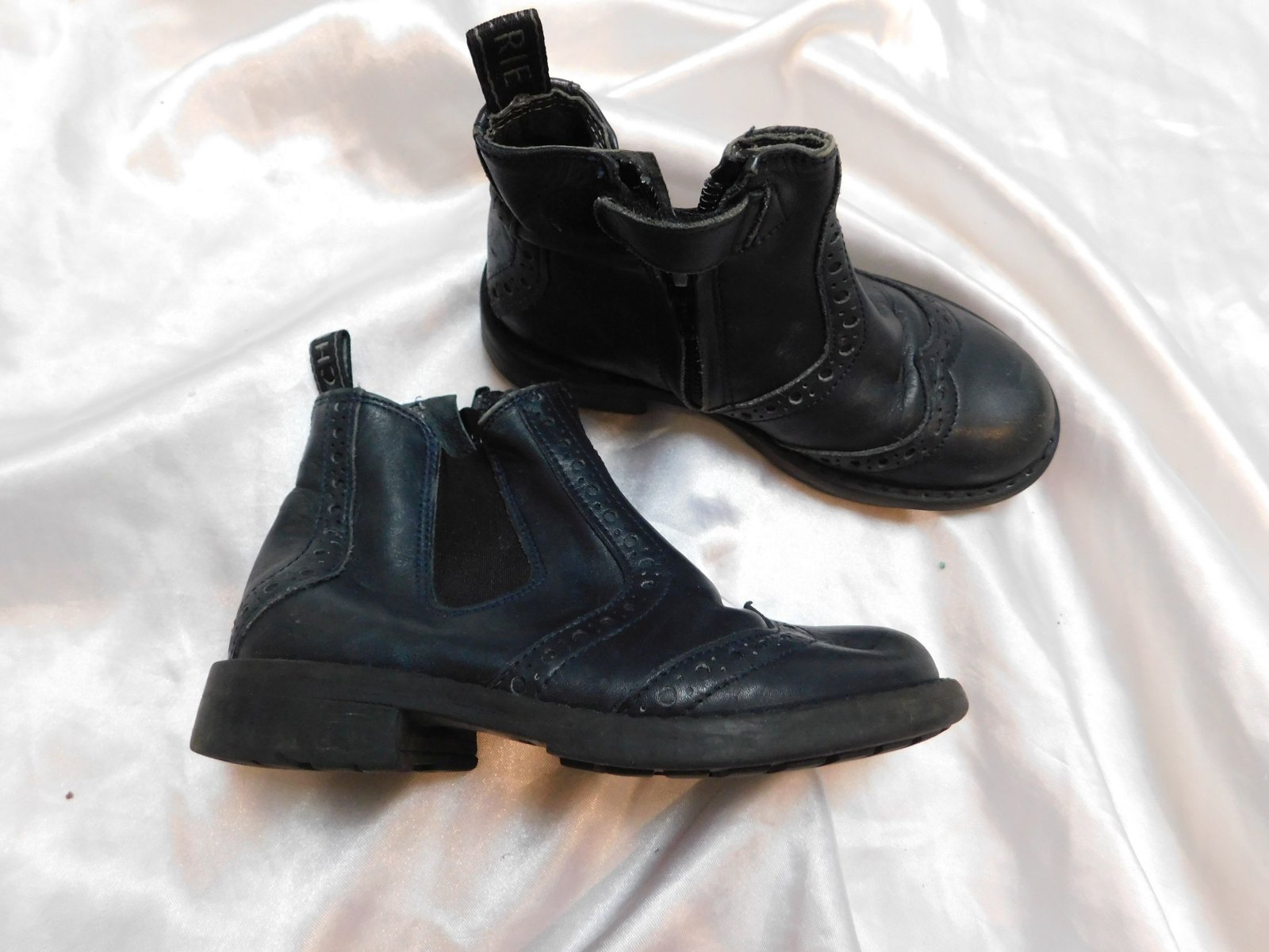 Luxusne kožene kotnikove topanočky,unisex,tmavo modrej farby,zapinaie na zips,bočne gumove vsadky,perforovane.100%prava koža.PC 260€.sem tam šuchnute/pozri foto. o8