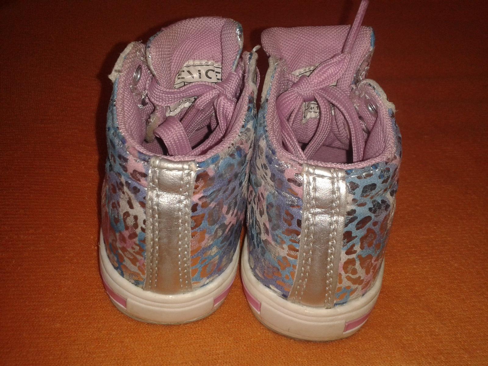 Málo nosené, neokopané, neošúchané, neschodené, len vpredu sa začal lúpať materiál, obuté to skoro nevidieť, praktický zips zboku, super aj k sukničke, mali ceľký úspech, mala ich v troch veľkostia...