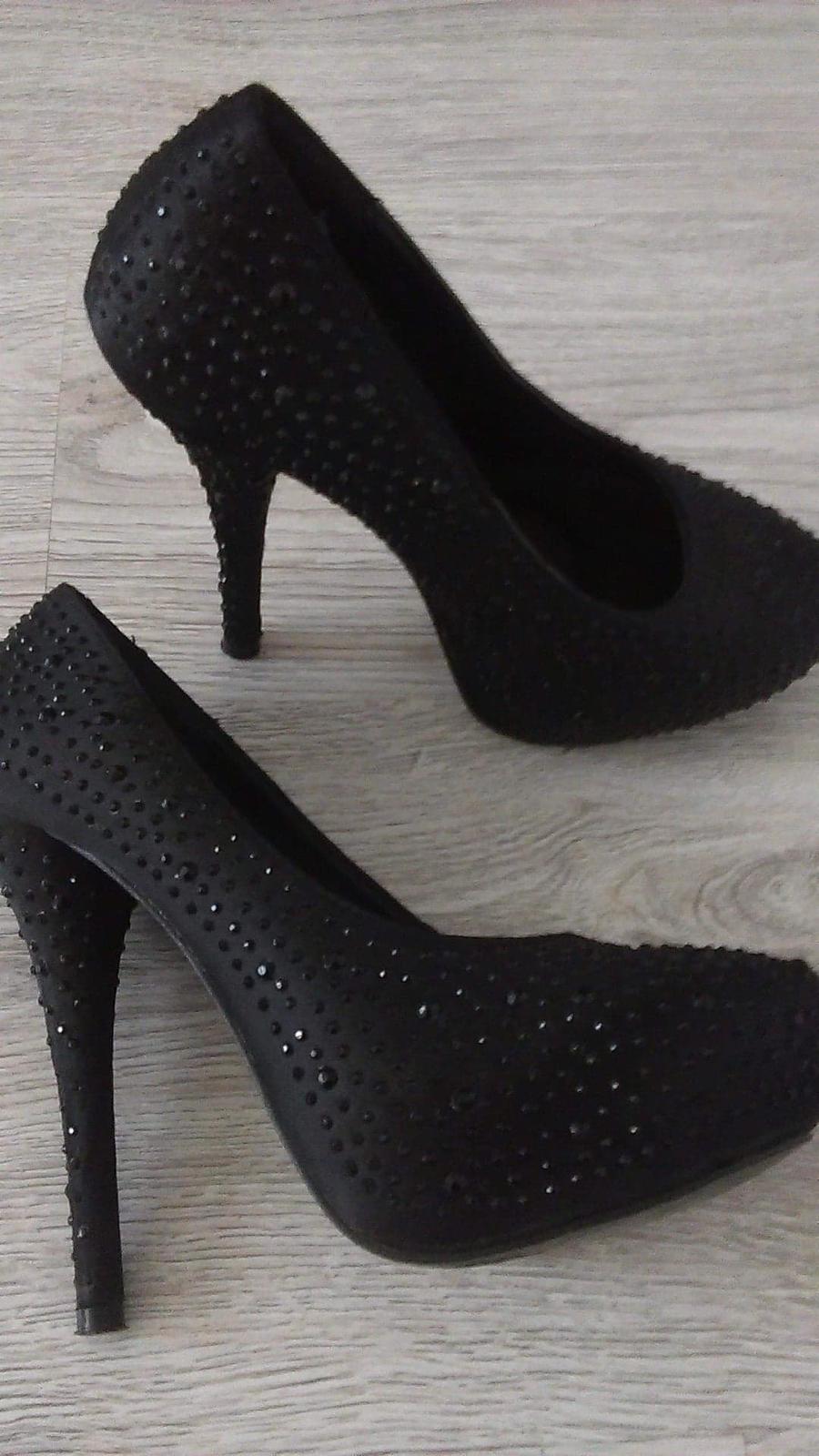 Predám krásne čierne lodičky ,posiate čiernymi kamienkami.Výška opatku 13 cm Lodičky boli obuté iba 1x. Top stav. Kuknite aj ďalšie moje inzeráty. ( pôvodná cena 49 eur)