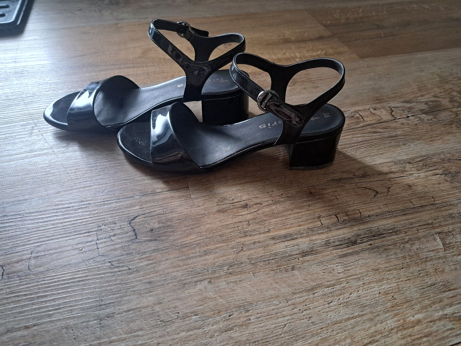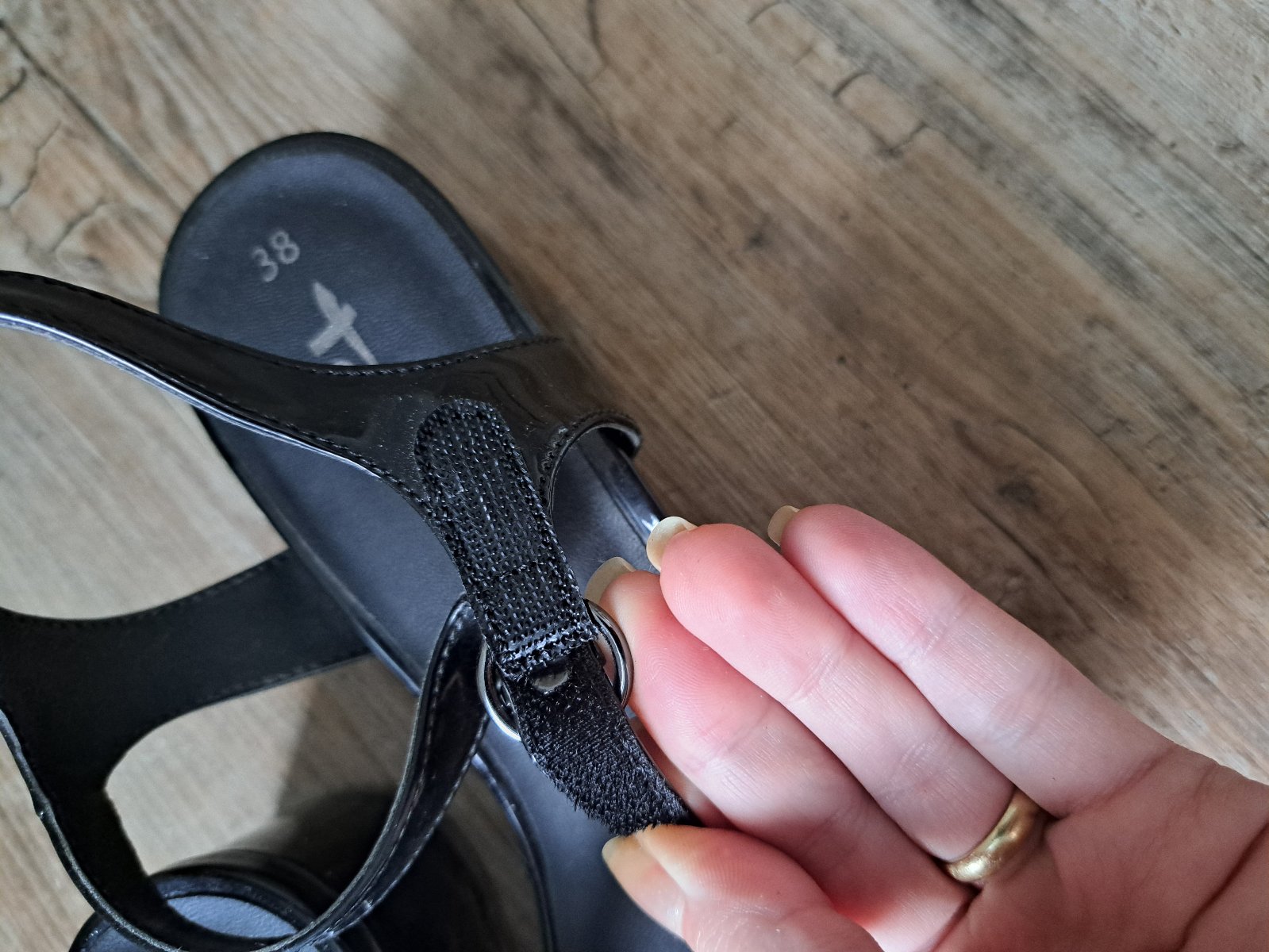 krásne elegantné pohodlné jednoduché lakované sandále Tamaris, zapínanie prevlečením + suchý zips