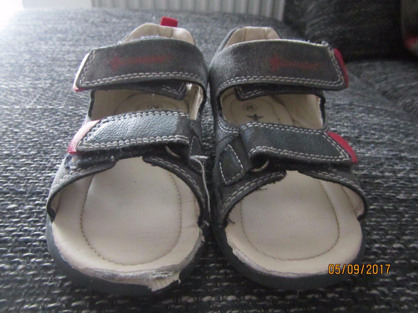 Nosili sme len v skolke, podrazky pekne, neschodene, aj vnutro pekne, na pravej sandalke asi od zakopnutia trosku poskodene, da sa to par stehmi zasit...este na donosenie fajn.