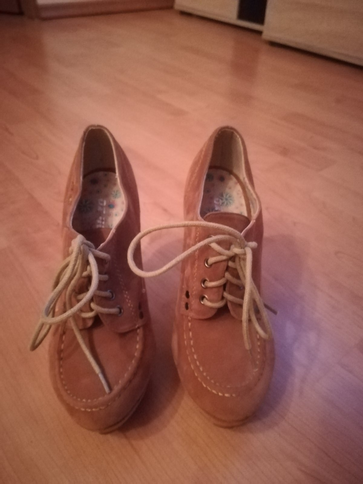 Krásne topánky materiál ako brúsená koža, vzadu zdobené kamienkami, zboku je ozdobný zips a zapínanie je zvnútra na zips, super stav