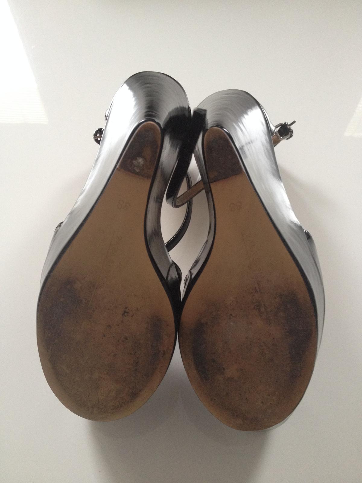 Čierne exkluzívne kožené topánky na vysokej platforme. Obuté raz, na svadbu. Top stav.
