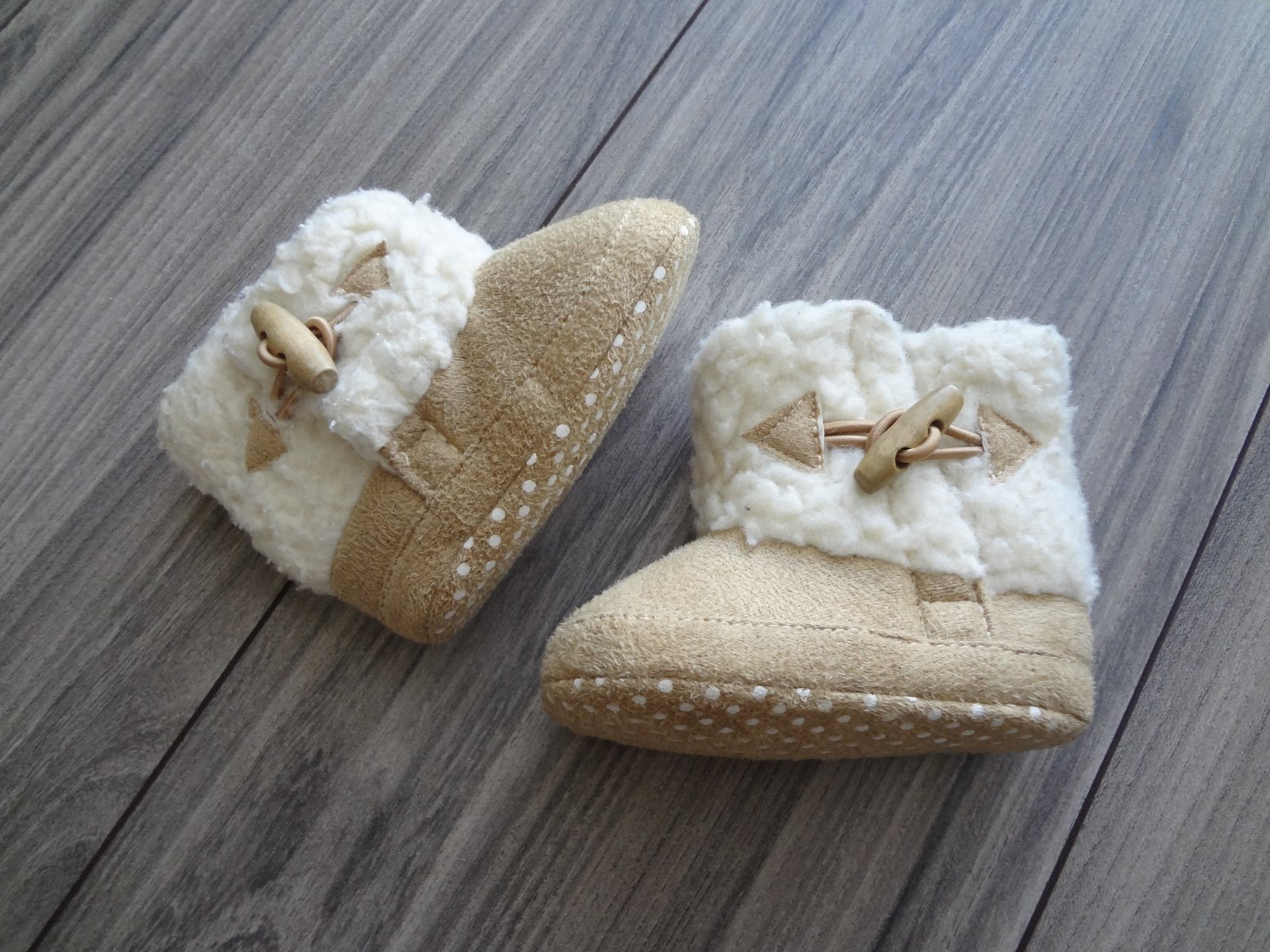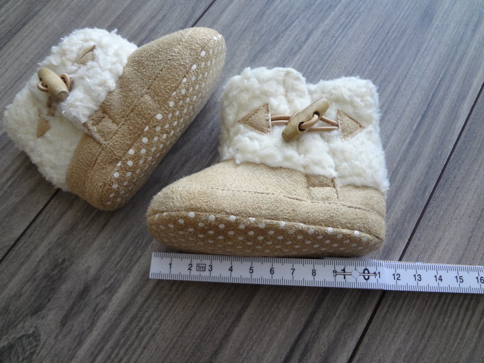 Milé capačky na chladné dni. Dĺžka podrážky: 9 cm - 0-1 mesiac 10 cm - 0-3 mesiace 11 cm - 3-6 mesiacov 12 cm - 6-9 mesiacov
