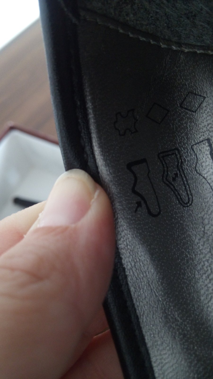 Boli nosené s protišmykovými vložkami pod špičku, preto v jednej topánke je akoby vytrhnutá časť vložky.