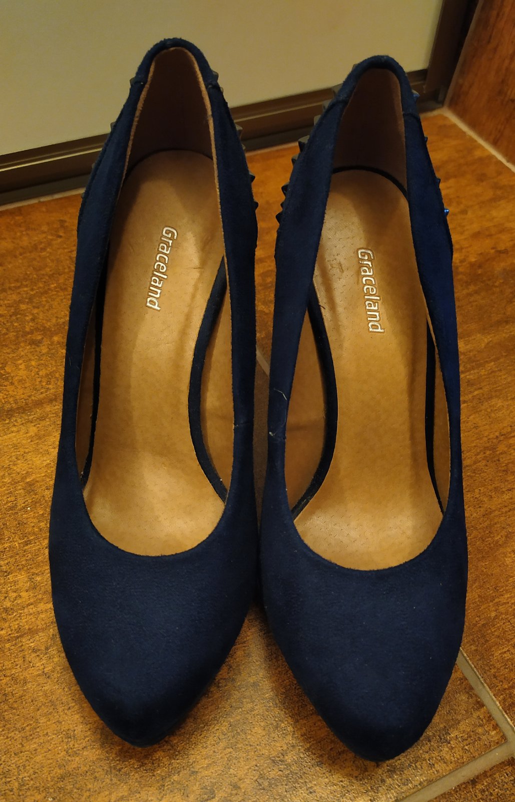 Ponúkam na predaj topánky na jar/jeseň tmavomodrej farby značky Graceland .Sú obnosené a minimálne vyšúchaný čierny lem okolo topánky s podrážkou zadnej strane topanky viď foto. Jemná škvrna na pre...