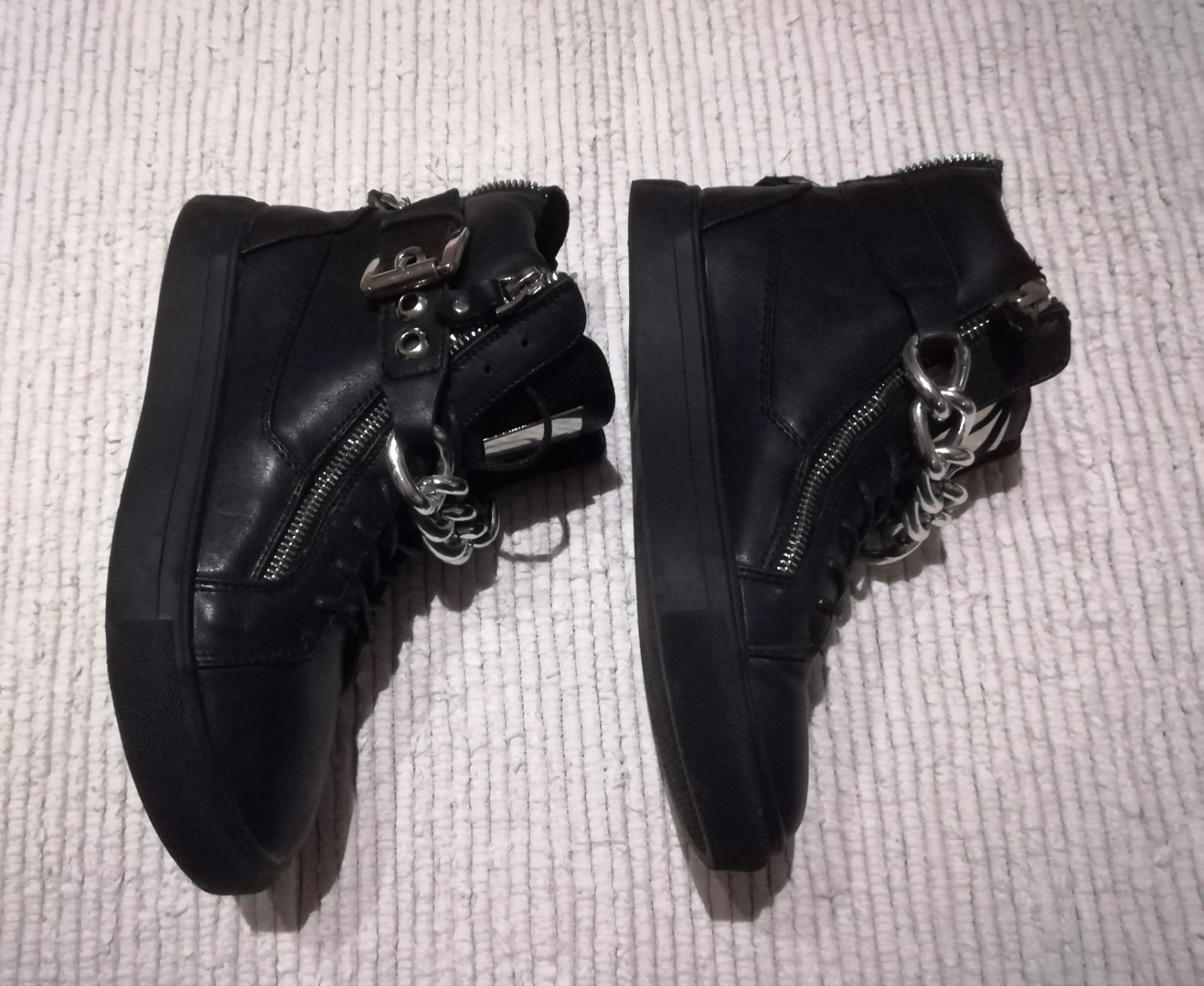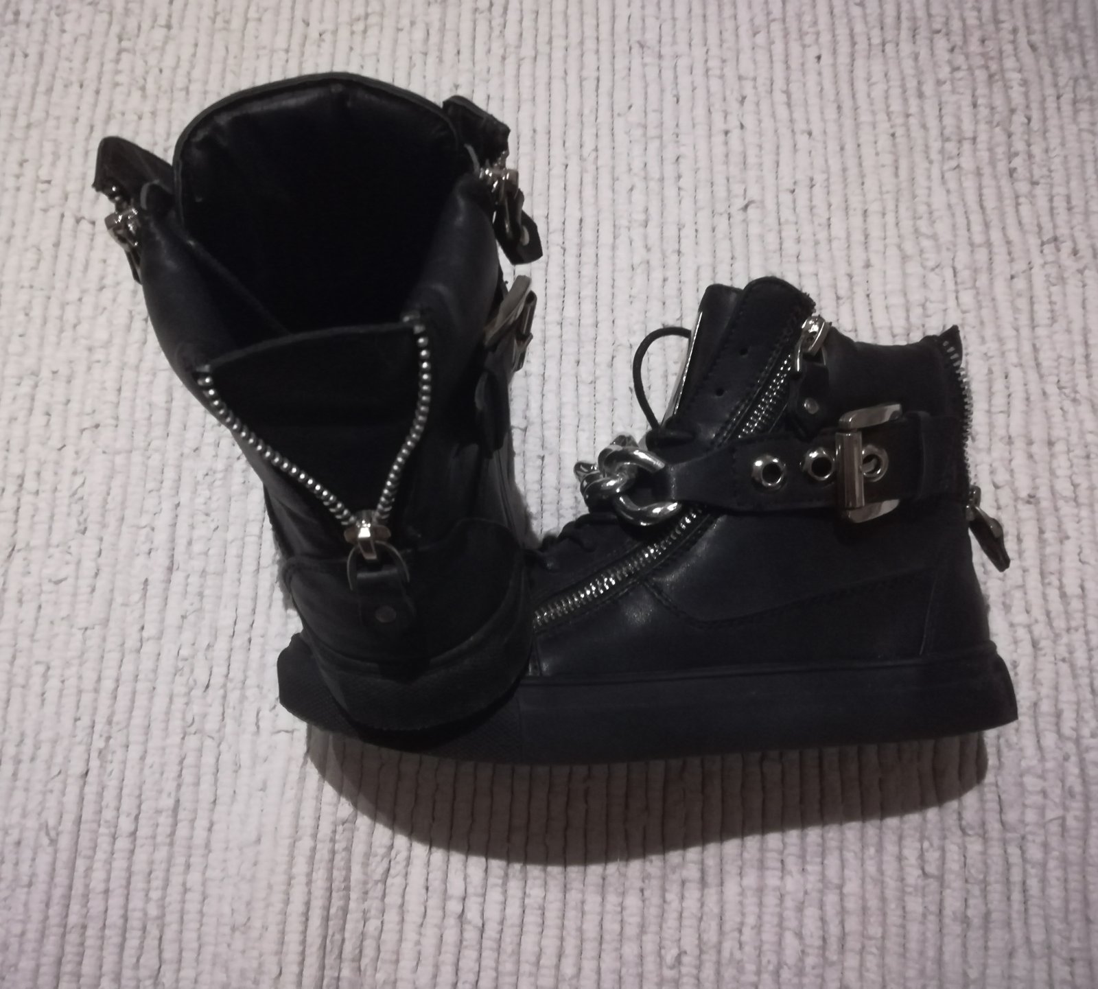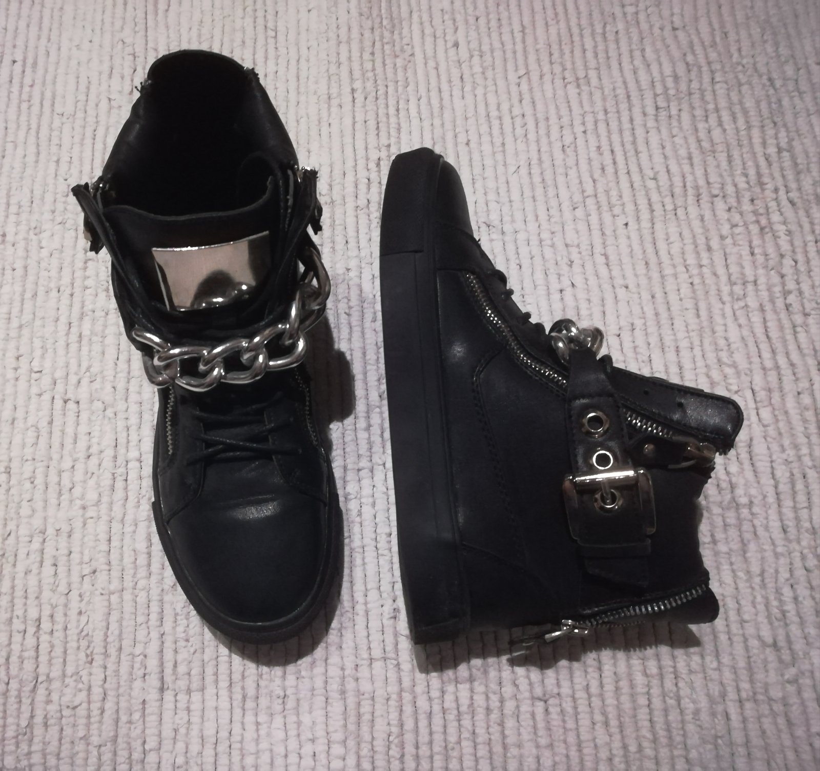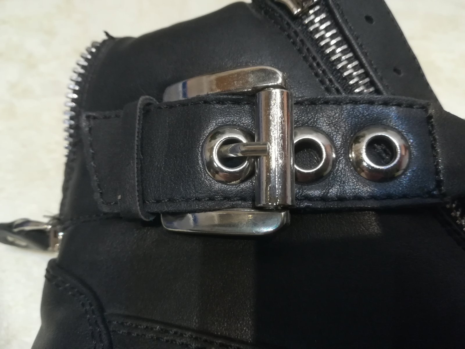 Obuté 2x, bez akéhokoľvek poškodenia, imitácia kože, šnurovanie, zips, pracka, hrubá ozdobná reťaz..