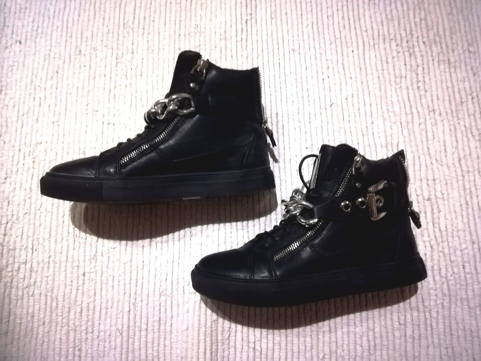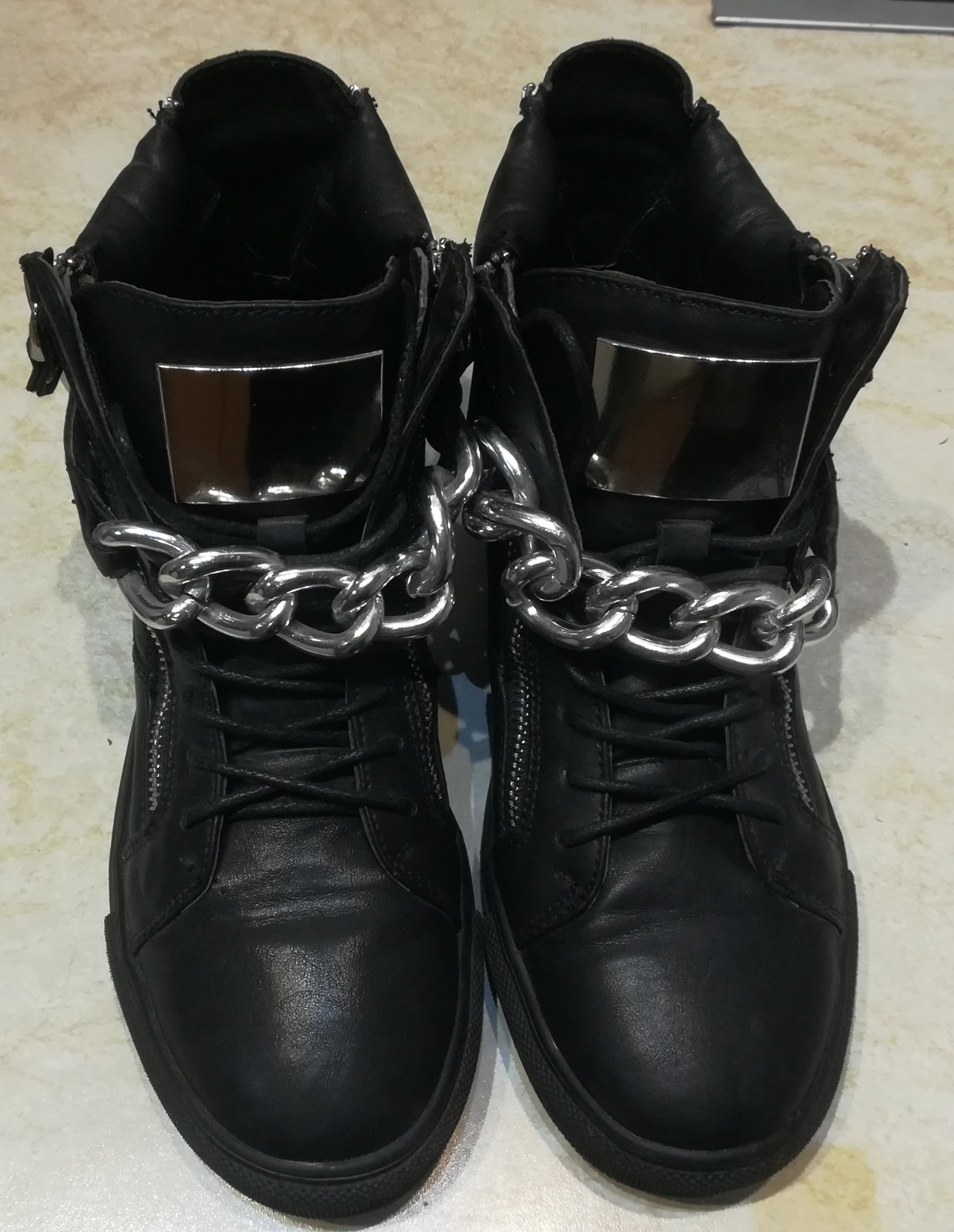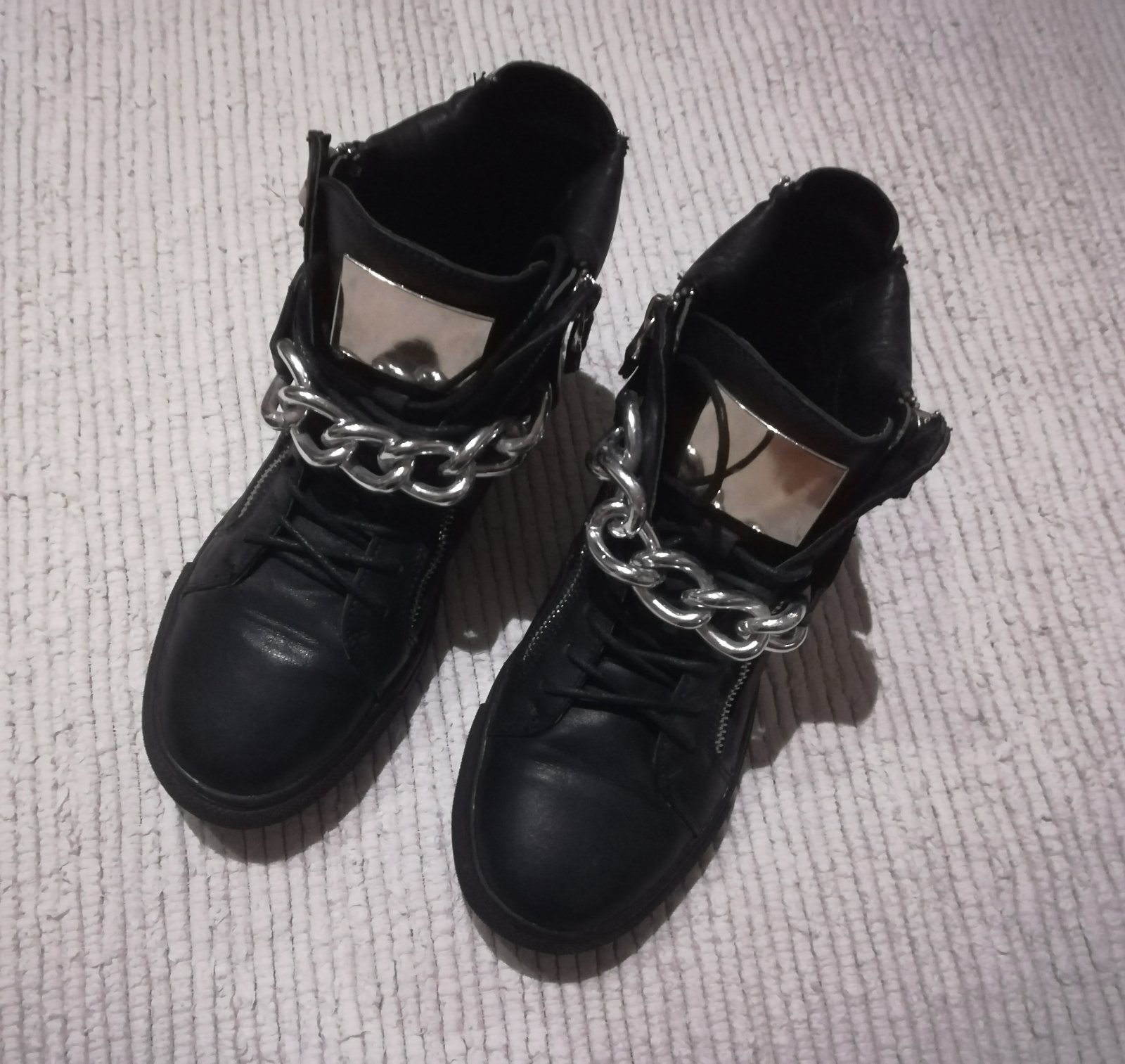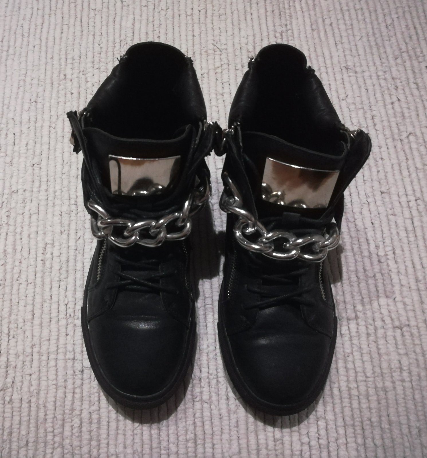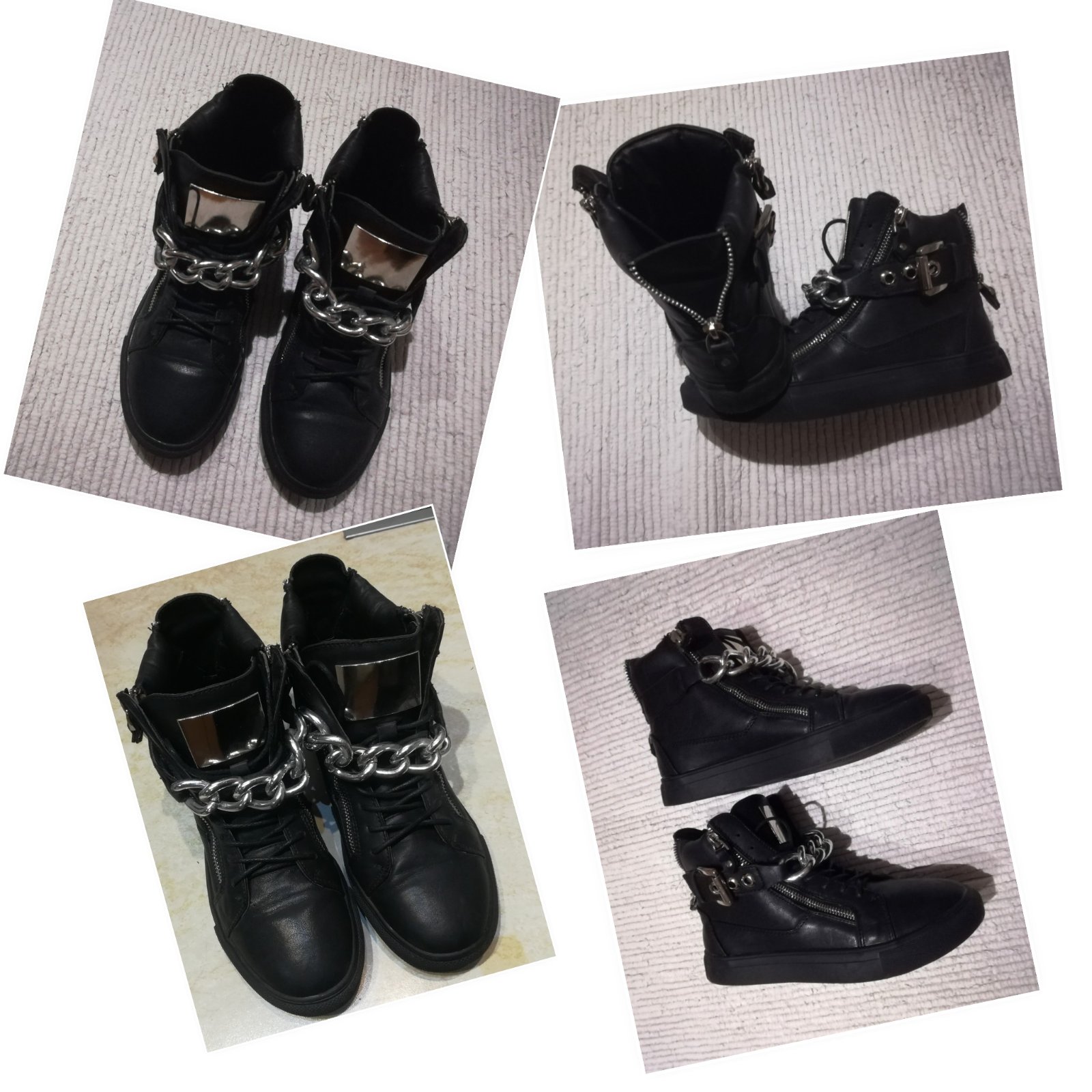 Obuté 2x, bez akéhokoľvek poškodenia, imitácia kože, šnurovanie, zips, pracka, hrubá ozdobná reťaz..