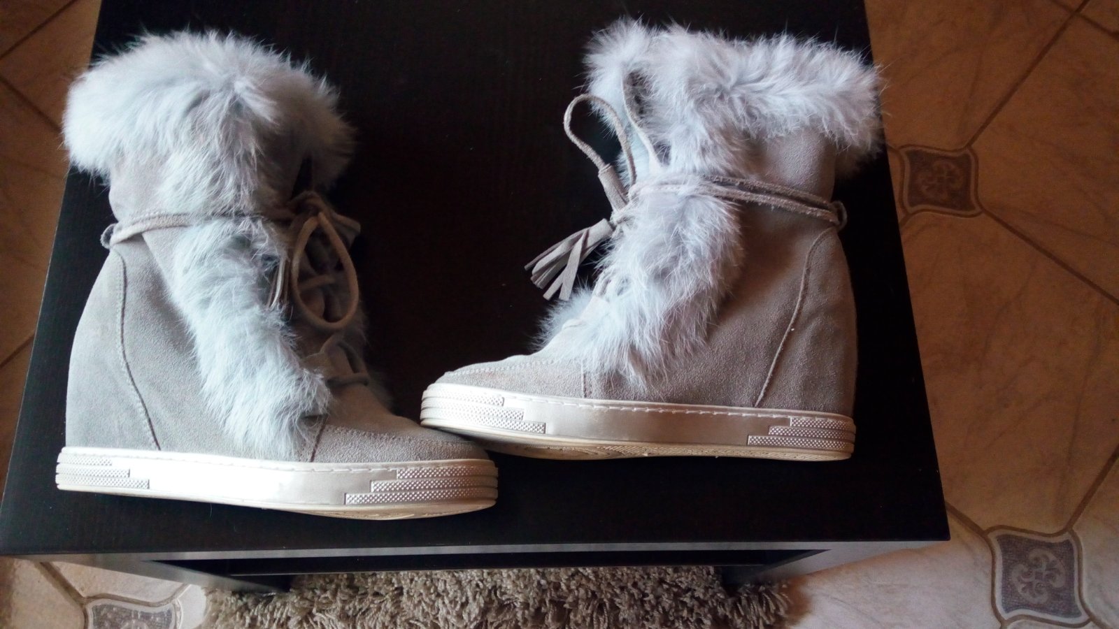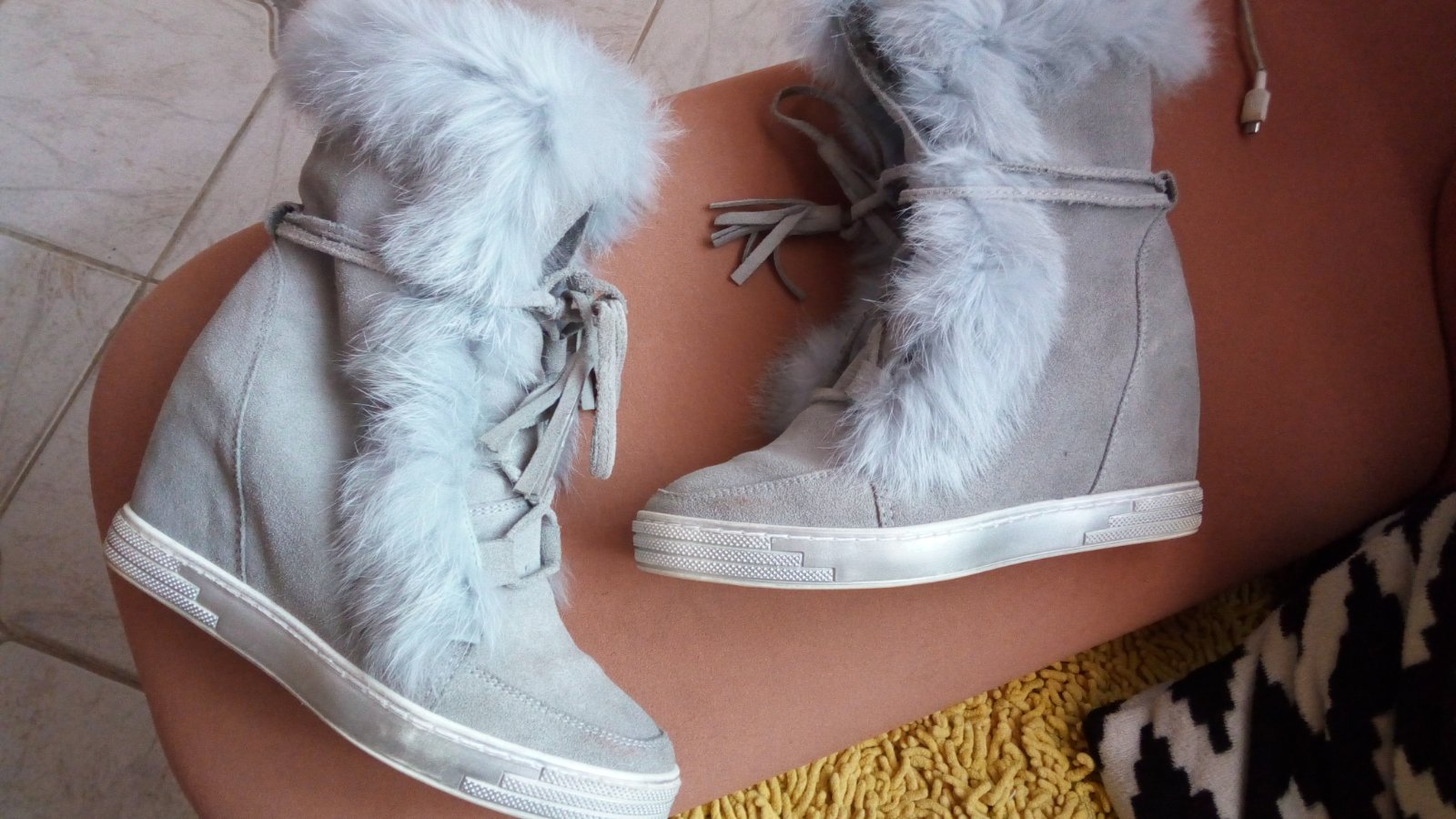 Predam tueto luxusne a extravagantne,cizmicky z pravej kozusiny a pravej koze. Cizmicky naju zlatobiely spodok a kryty asi 6-7cm opatok. Opatok na spodu je tienovany striebornou farbou. Ozaj luxusny kusok. Velkost je 39 a cena je 67 eur plus posta. Kuk dalsie moje inzeraty.