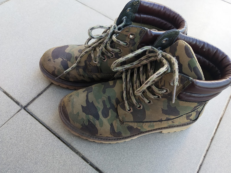 Pekny nosený stav, VD 23. Zvnutra pri patach je odreta latka, a snurky treba vymenit (staci obycajne tensie), ale inac su funkcne.