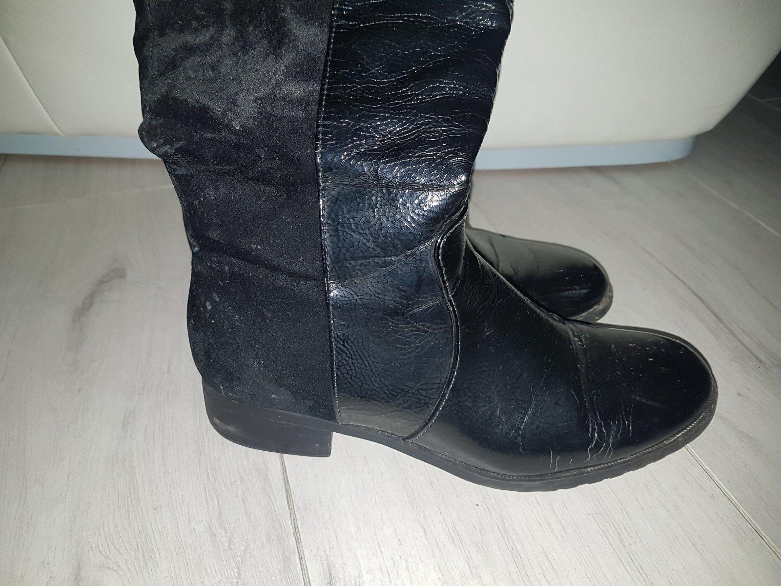 Predám krásne nove čižmy nad kolená, veľkosť 37, VD 23,4cm. Mne sú bohužiaľ veľké 😞