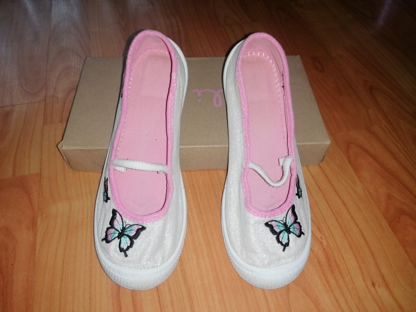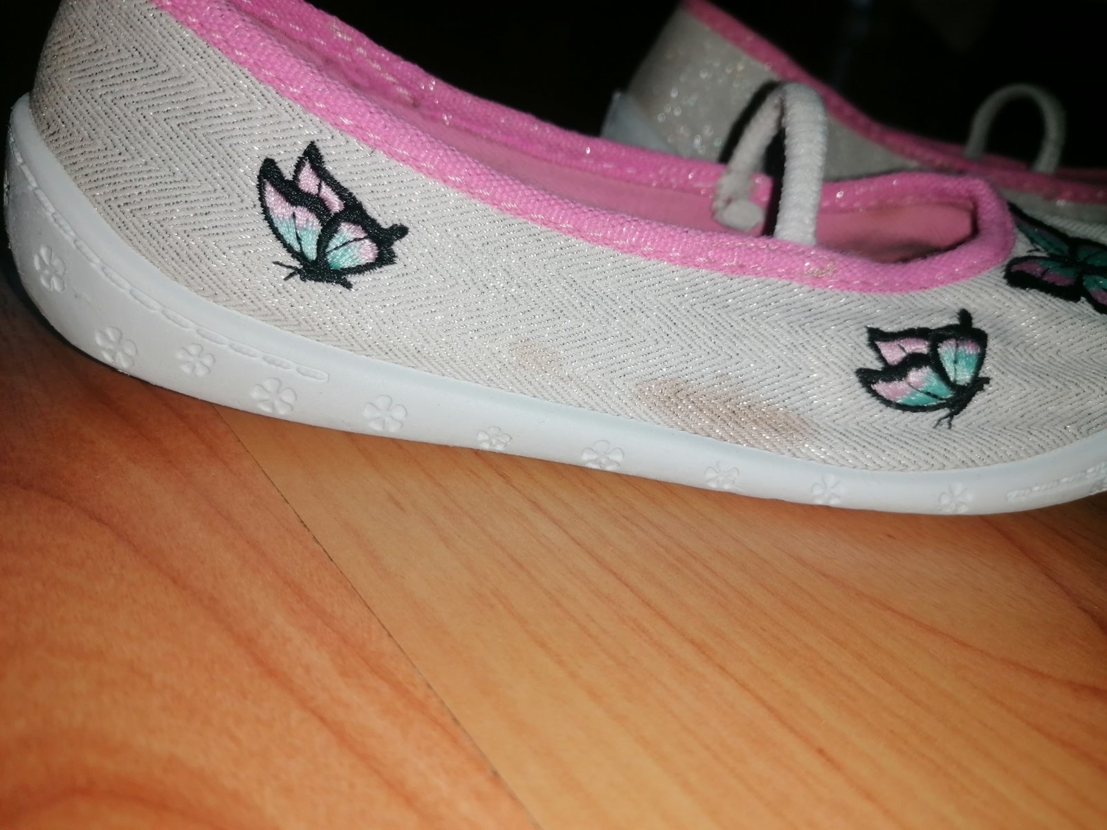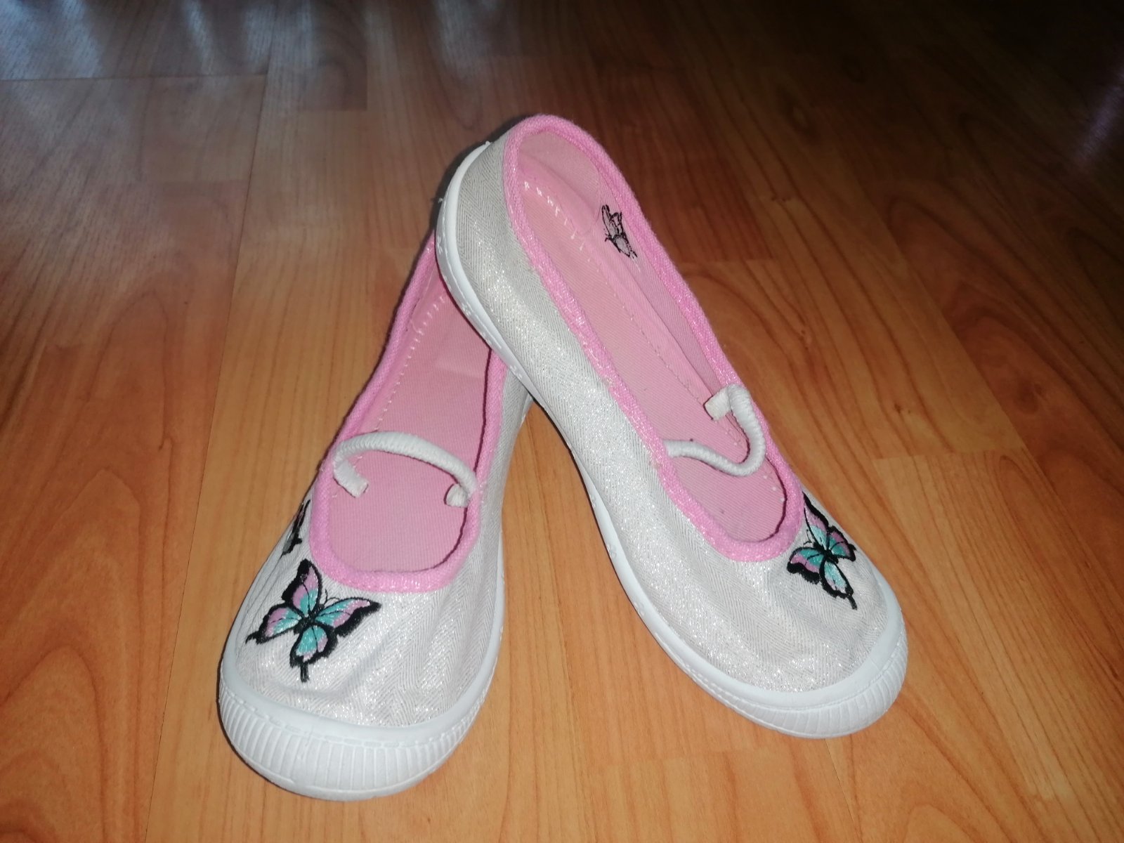 Balerinky obute 1krat na prvé sv.prijimanie aj to len v kostole, kedže nam boli na tesno. Sú mensie ako písaná veľkosť tak na 32 Vd 20,5 cm