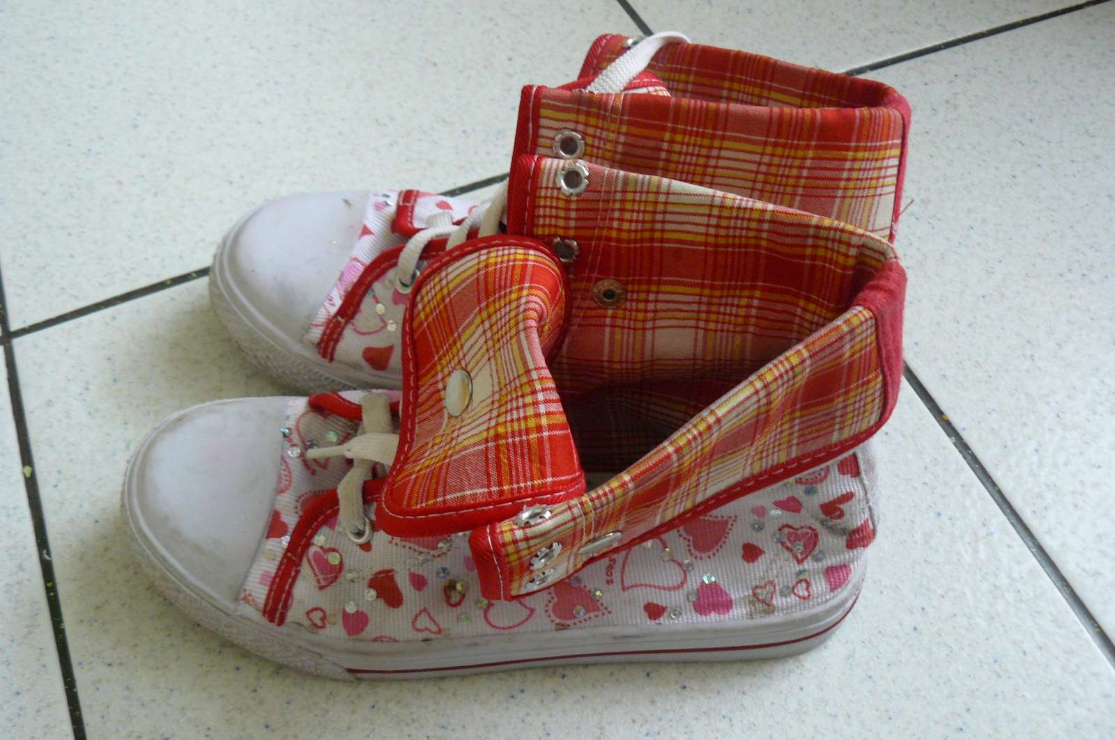 Predám tenisky,sú to vysoké plátenky,ktoré sa dajú ovinúť a nosiť aj ako krátke.Treba ich vyprať.Cena 3€ plus pošta.Tovar zasielam po vložení peňazí na môj účet.Objednávka je záväzná.Po objednaní nie je možné tovar vrátiť.Vnútorná dĺžka-21,5cm.Veľkosť na nich je písaná 36,ale na 36 nesedia.