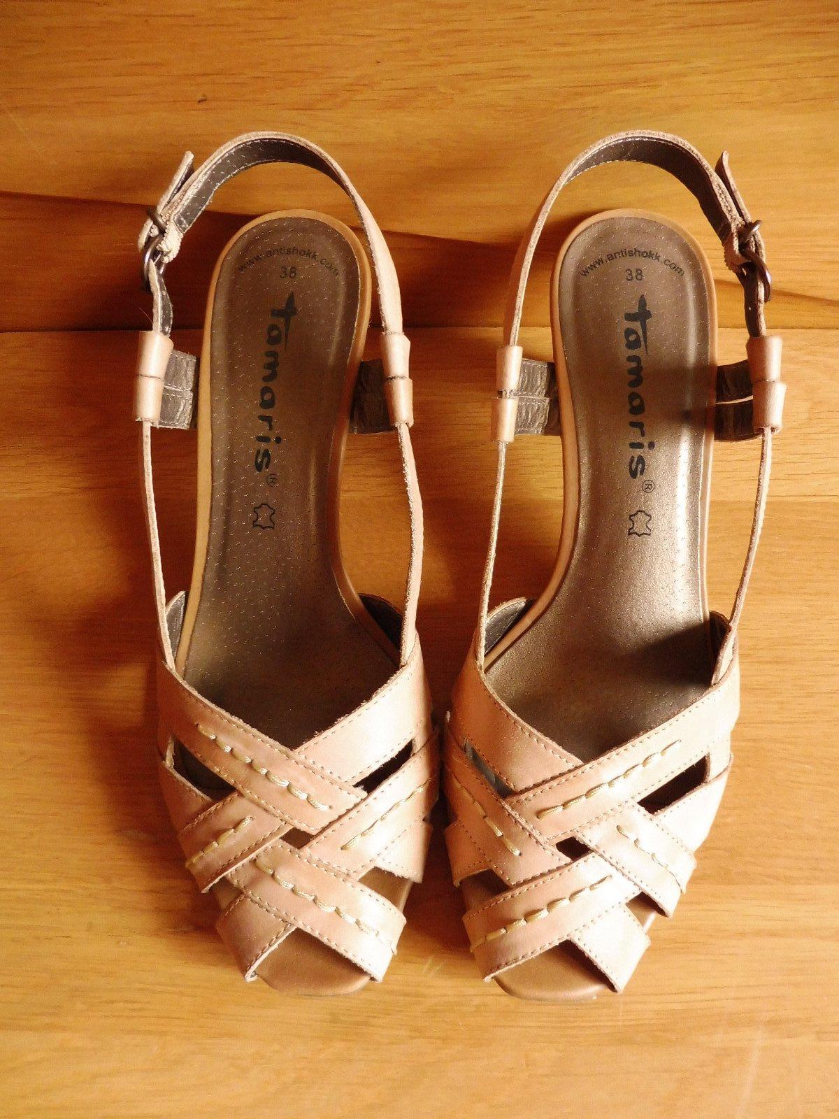 Predám kožené sandále vo veľmi dobrom stave. Sú bez škrabancov, dier a iných poškodení. VD = cca 25 cm, výška opätku = cca 6,5 cm. Cena je bez poštovného, v KE po dohode možný osobný odber.