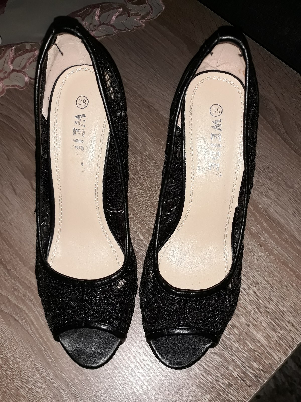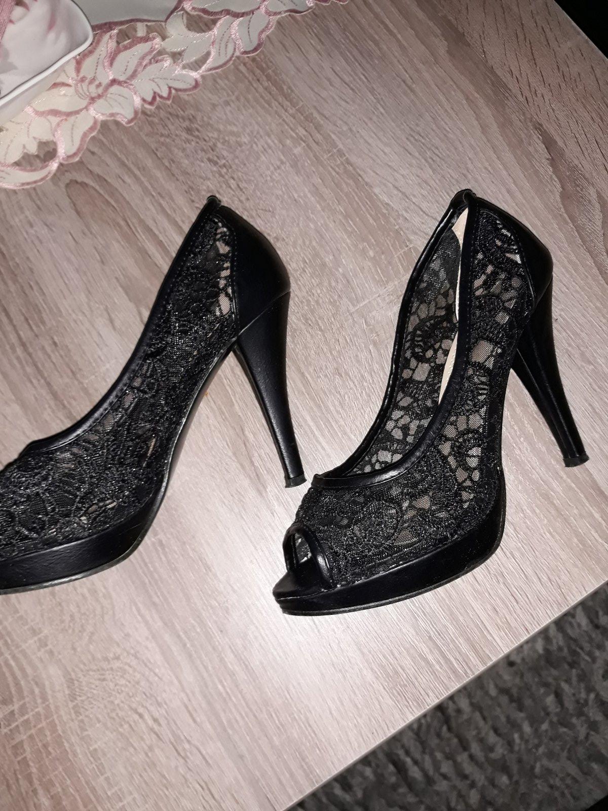 krásne lodičky, vhodné i na slávnostnejšiu udalosť. sú zdobené krajkou a jemnými trblietkami. Nové, nenosené. výška opätku 10,8cm.