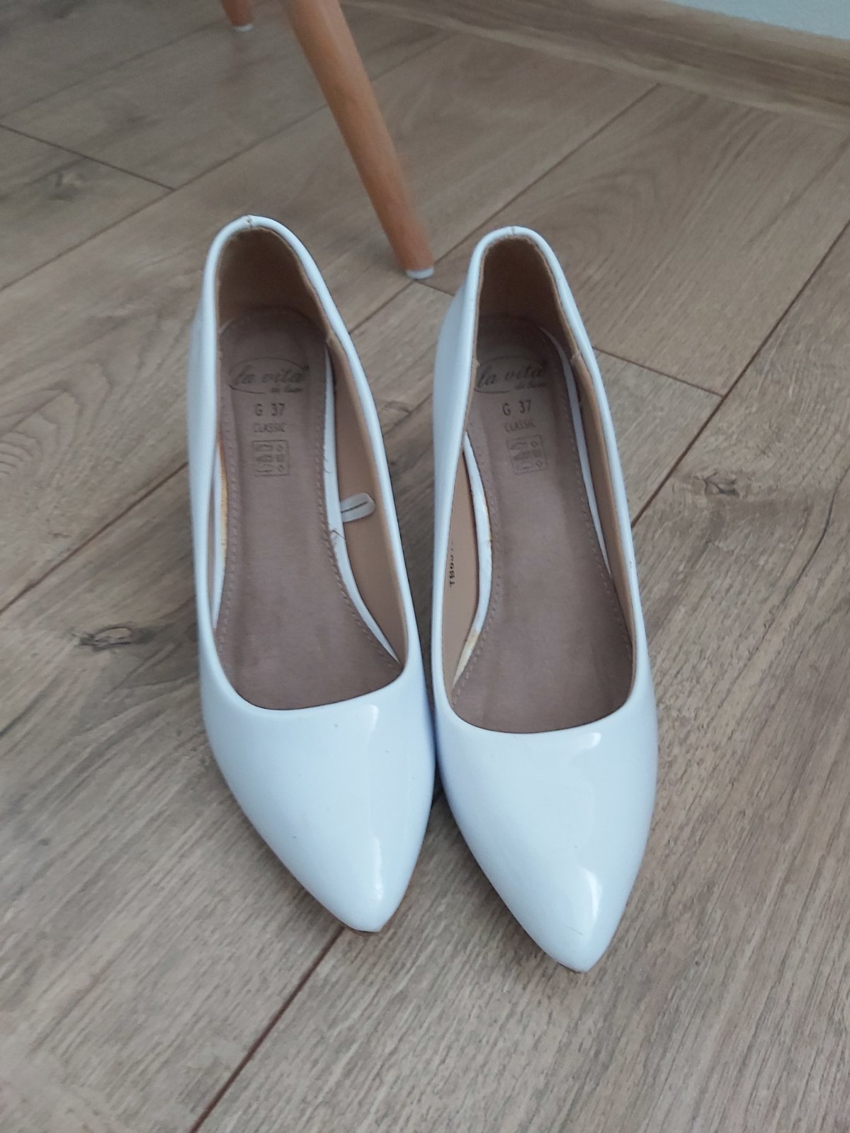 Predám lakovky veľkosť 37. Trošku šuchnuté. Obuté 1x na prvom svätom prijímaní. Vnútorná dĺžka cca 21 CM. Cena 10 €