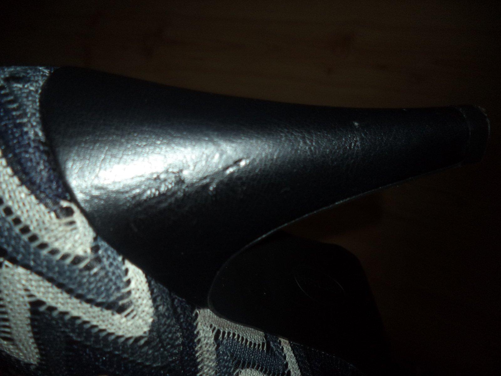 Predám topánky na klinovom podpätku, podpätok trošku šuchnutý viď foto. Inak bez poškodenia či škrabancov.