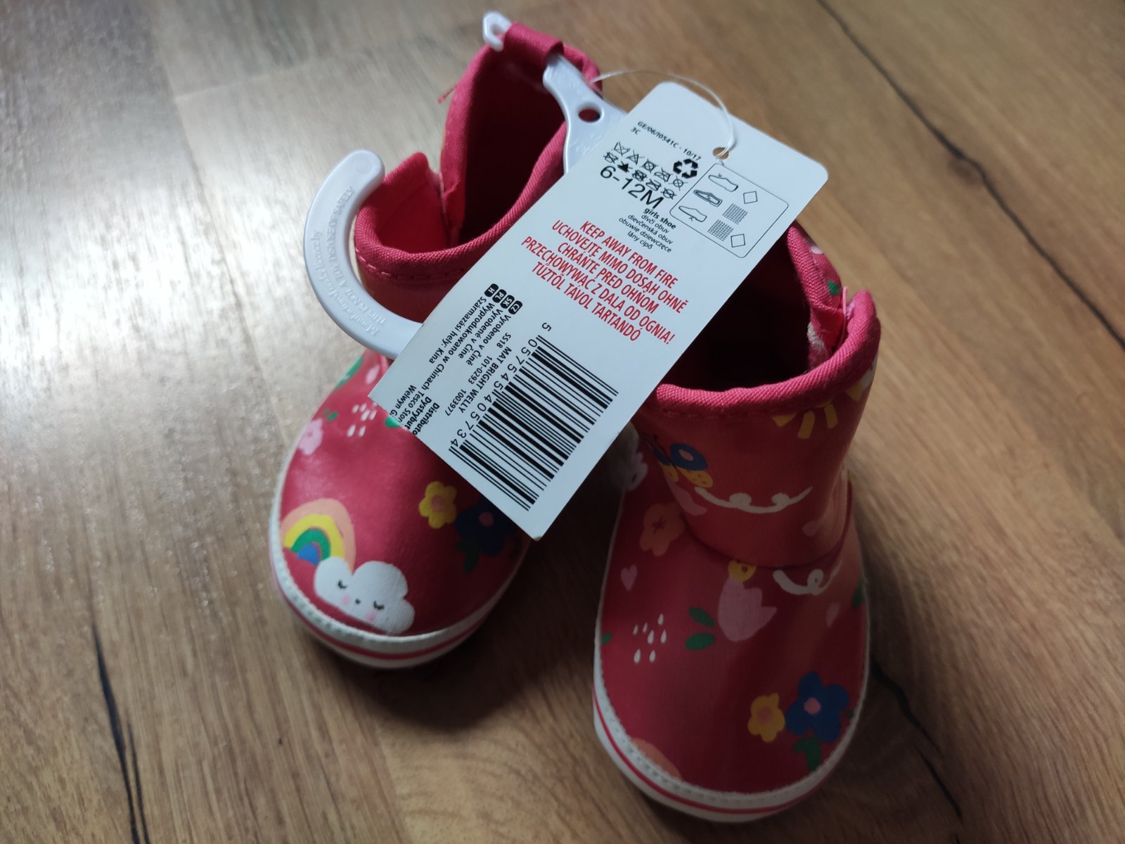 Voľné: žlté: 18,19,22,23 modré: 20,22 ružové: 20,22 červené: 20,21,22,23 Materiál: zvršok - prirodná guma, stielka - textil Veľkostná tabuľka - vnútorná dĺžka a vnútorná šírka 18 - VD 12,5 cm, V...