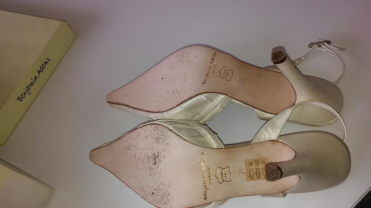 Predam smotanove original Benjamin Adams topanky vo vynikajucom stave obute raz na fotenie na svadbe. Su satenove s kozennou podrazkou aj vnutornou vystelkou.