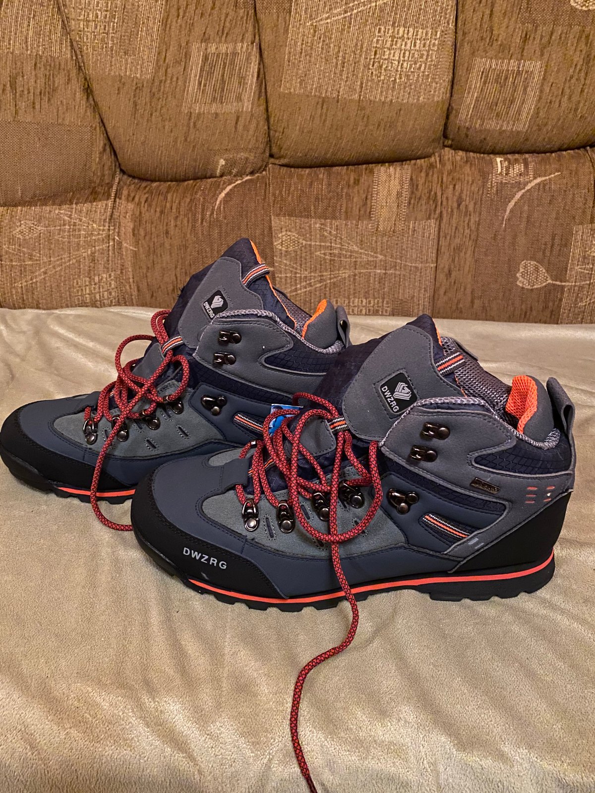 predám trekové topánky pre muža aj ženu vhodné do nepriaznivého počasia, najmä na turistiku. Farba šedá s oranžovou.Veľkosť je číslo 6 a 9. Topánky sú nové, nenosené. Každé po 40 eur.