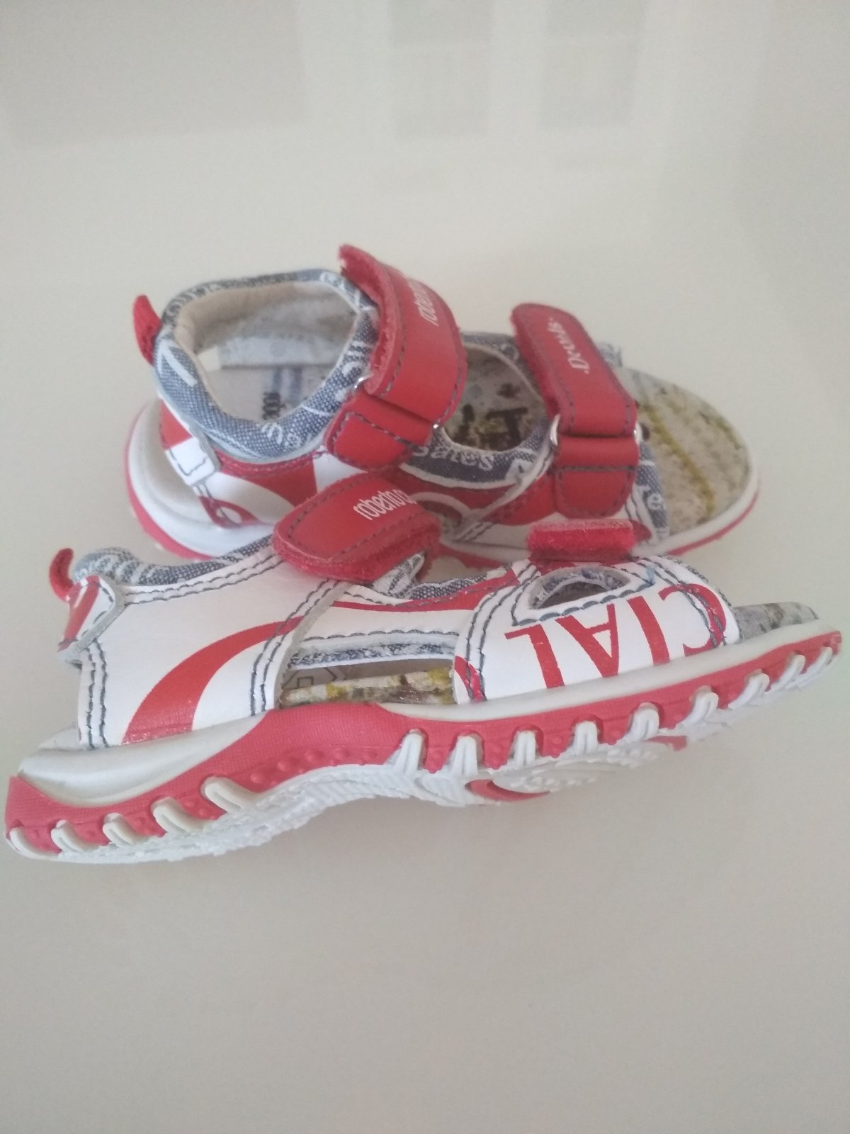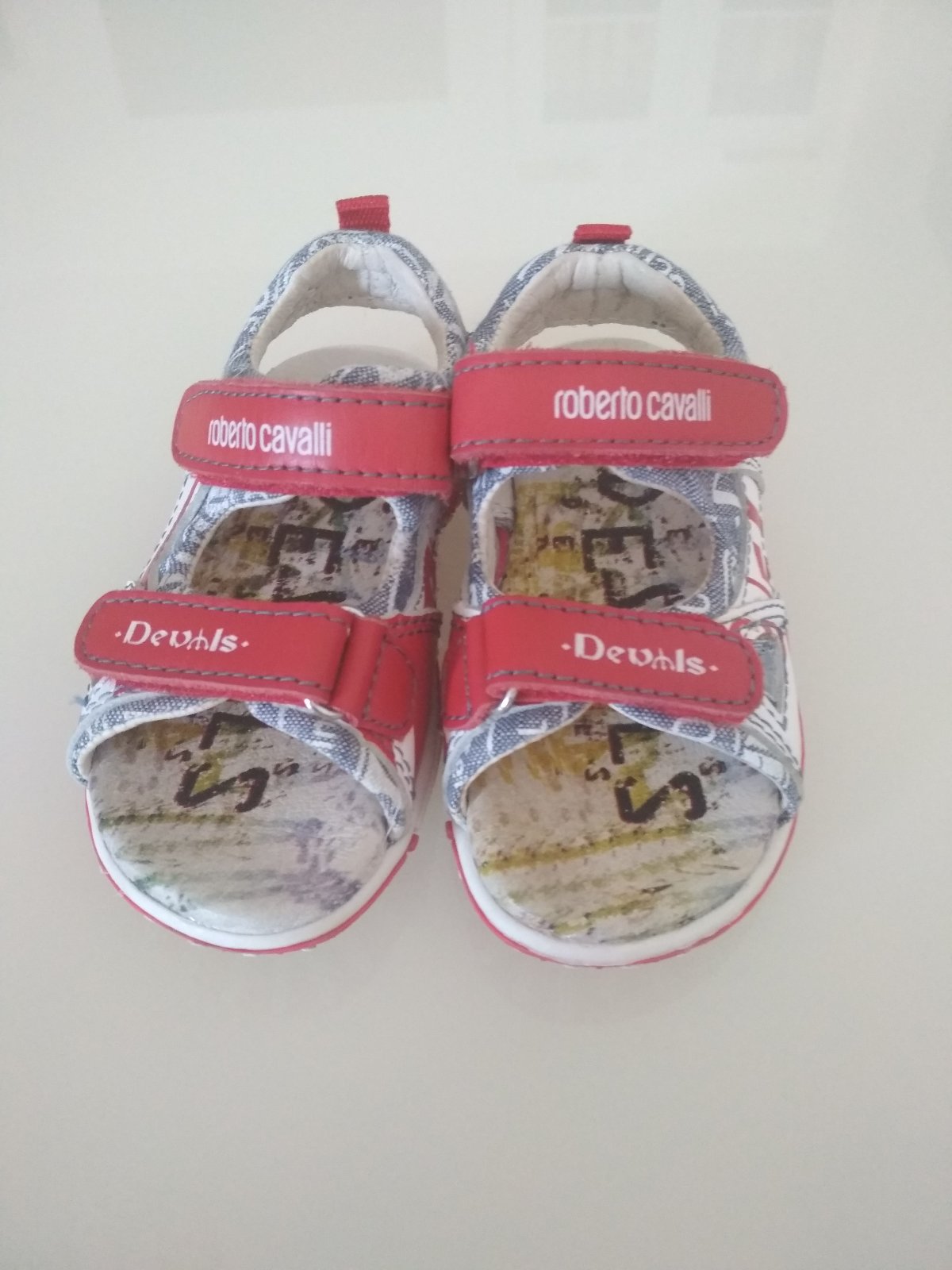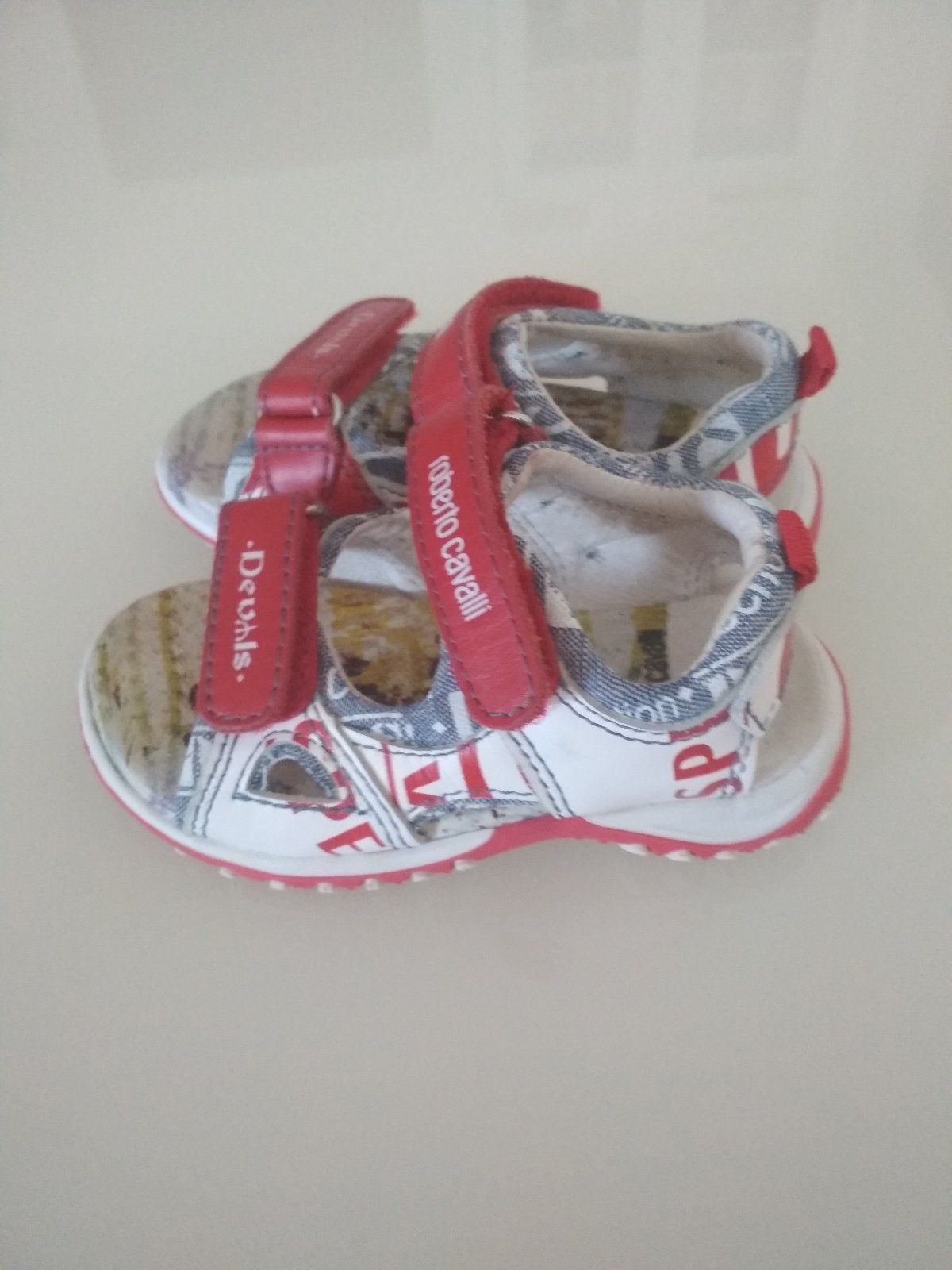 Krásne, lux. sandálky drahej zn.Roberto Cavalli, uvedená veľkosť je 22, ale sú menšie. Len 1x obuté, ale malý nosil už 22, takže mu boli tesné, sú ako nové! Pôvodná cena vysoká! Originálny limitovaný dizajnérsky kúsok. Je mi ľúto, že sú nám malé a preto ich určite odporúčam náročným maminkám! Kupované v zahraničí.
