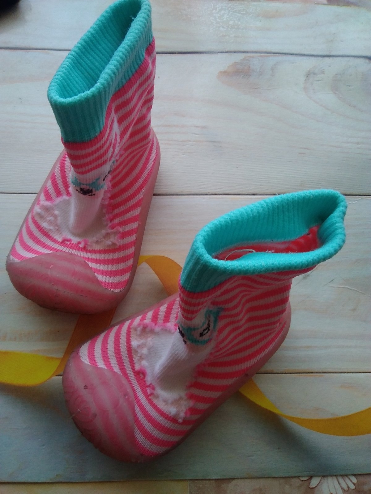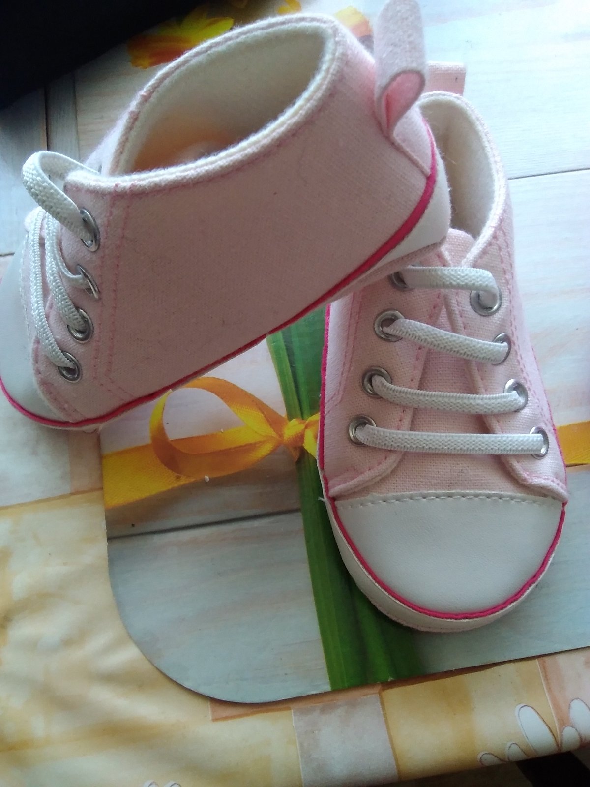 Capačky-tenisky s koženou stielkou. Mäkké, ohybné. Nosené prevažne v kočíku. výborné zapínanie na suchý zips. Nositelné aj na prvé krôčiky. Dobre držia na nôžke. Vo vynikajúcom stave bez poškodení.
