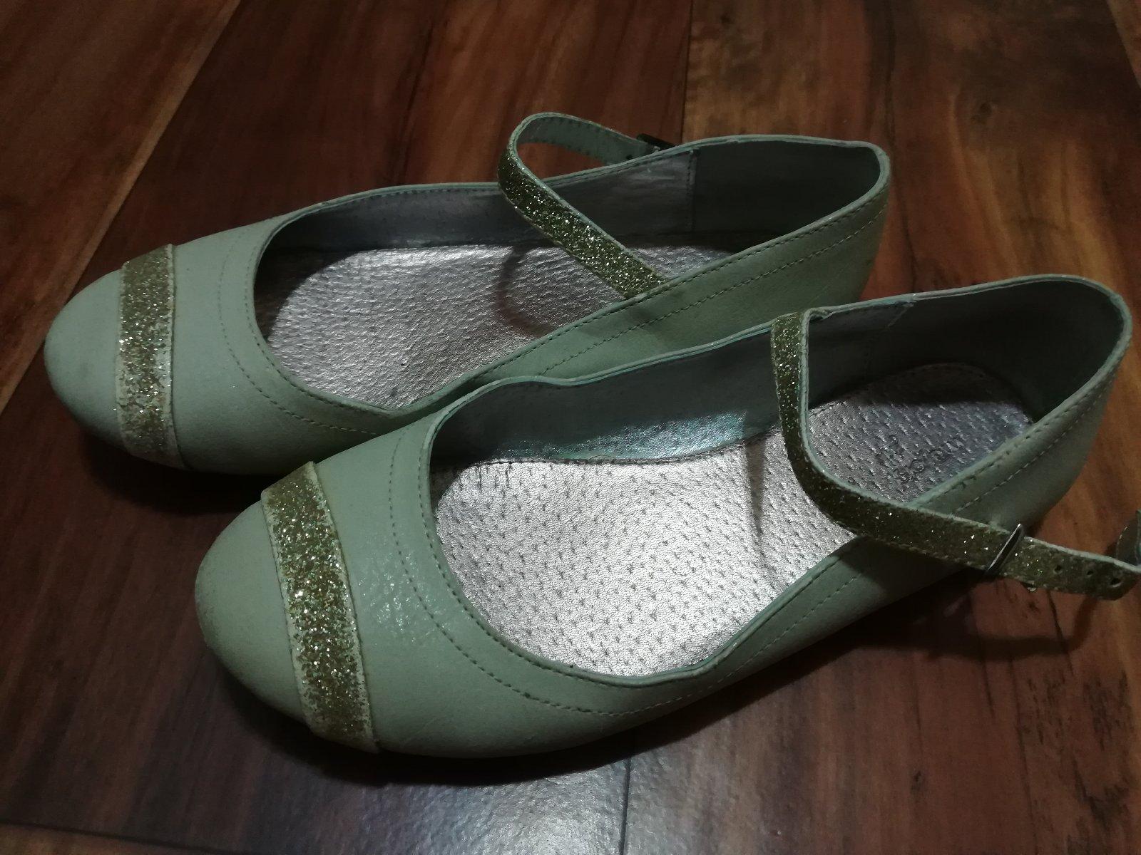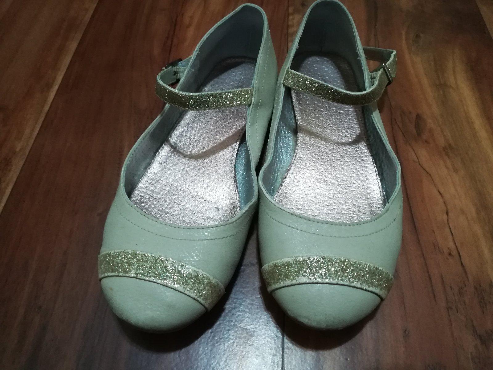 Krásne kožené balerinky, s trblietanie, nosené, stav viď foto, vnútro 19,5cm
