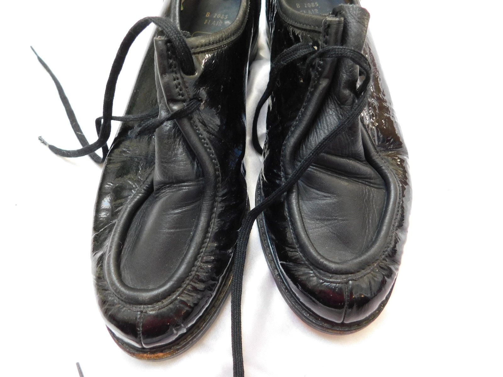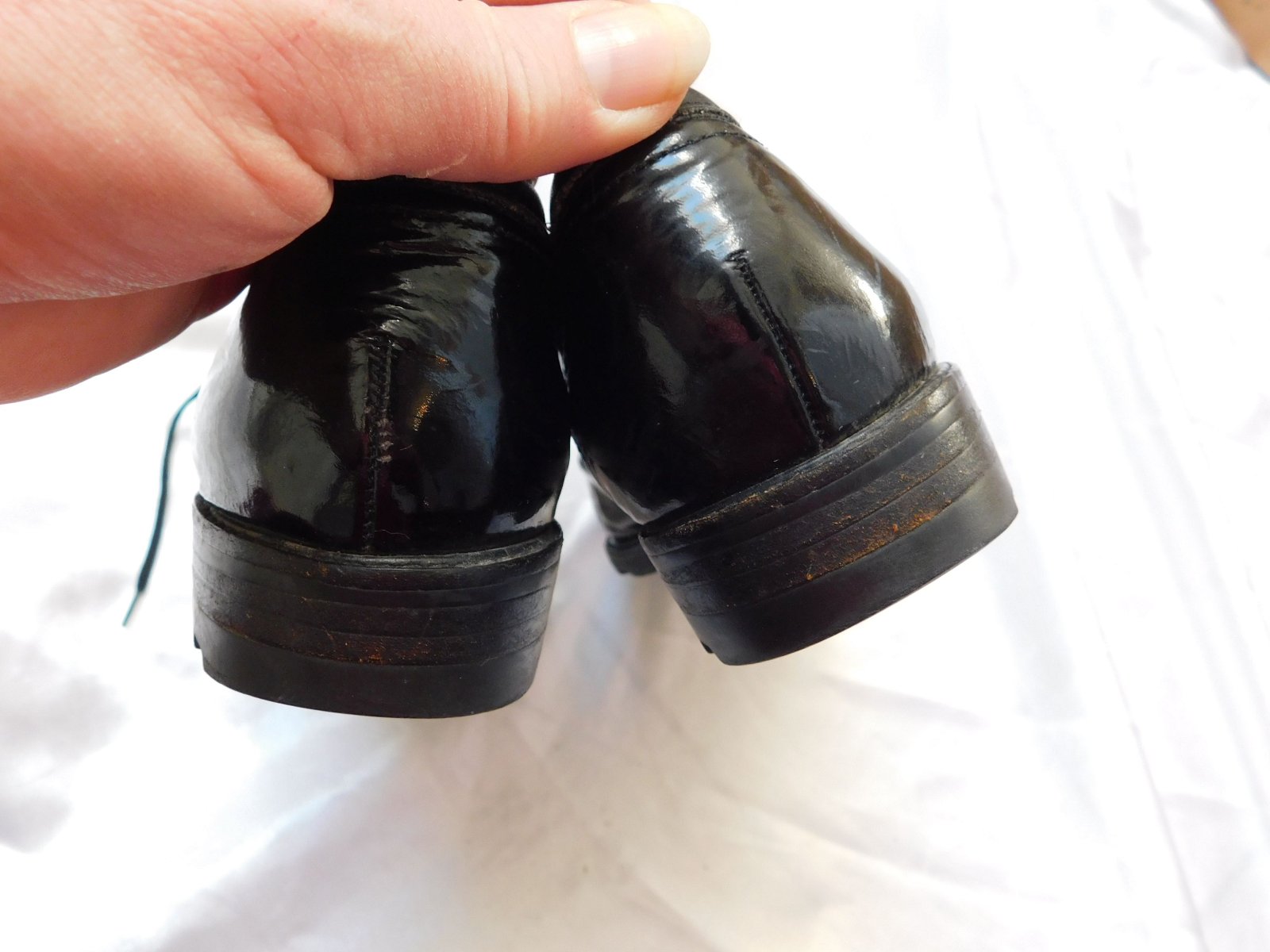 Malo nosene, vo velmi dobrom stave. a opatkoch maju par skrabancov, vid foto, a na jednej zvnutornej strany je jemna cmuha ale da sa podla mna prekryt takym ciernym leskom, cim sa natieraju topanky...