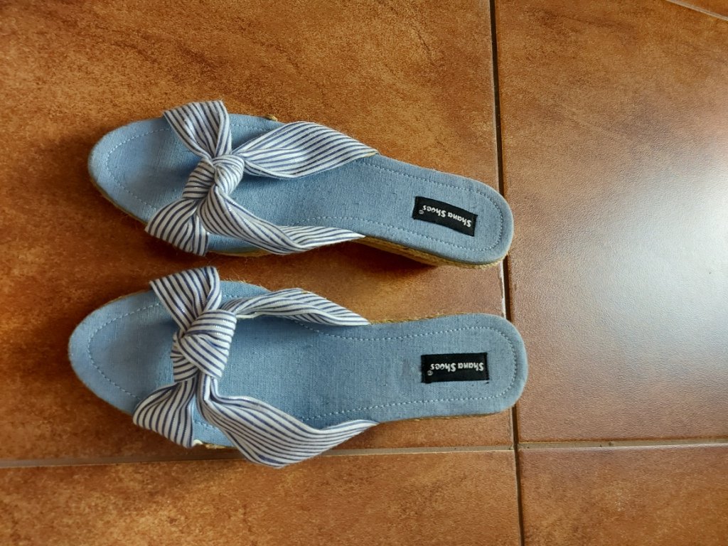 šlapky modro biele, latka, podpatok plný, nove , vel 38
