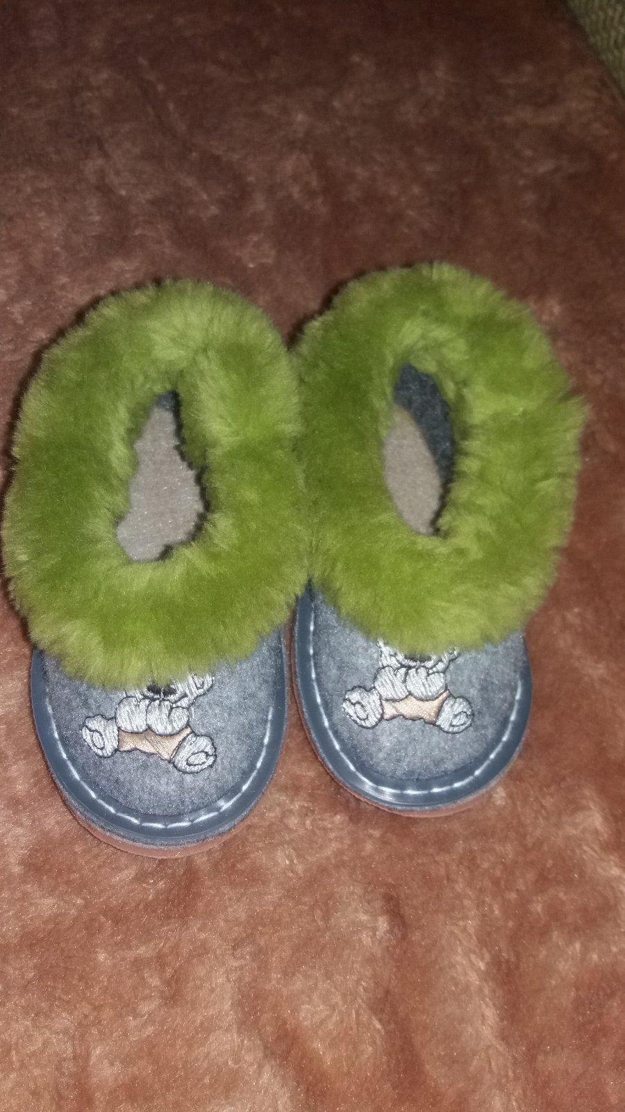 Nema rada papucky, tak sme ich nevyuzili. Su sedej farby so zelenou hunatou kozusinkou, dlzka 13 cm, zodpoveda c. 20.