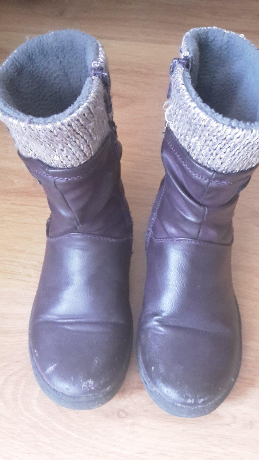 Dievcenske zimne topanky Baťa,zeteplene kožusinkou,nosene jednu sezonu na striedacku s inymi.super teple,kvalitne,nikdy nepremokli.lepky držia.velkost 30.