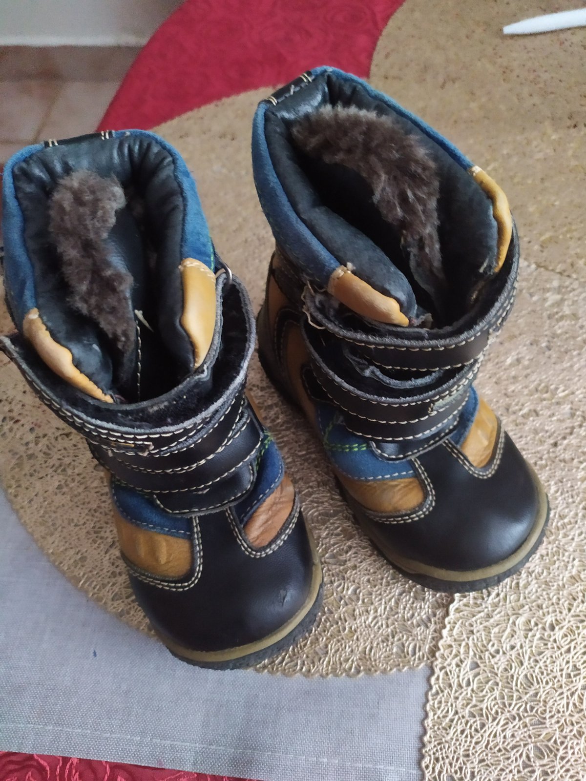 Malo nosene. Teplucka kozusinka. Neznosene.Nevycaptane. Jeden lepak trosku z vnutra vydraty. Na funkcnosti neubera ani to nie je vidiet.Velkost udana 26 ale su mensie. Dlzka stielky 15,5cm. Navonok bez poskodeni.