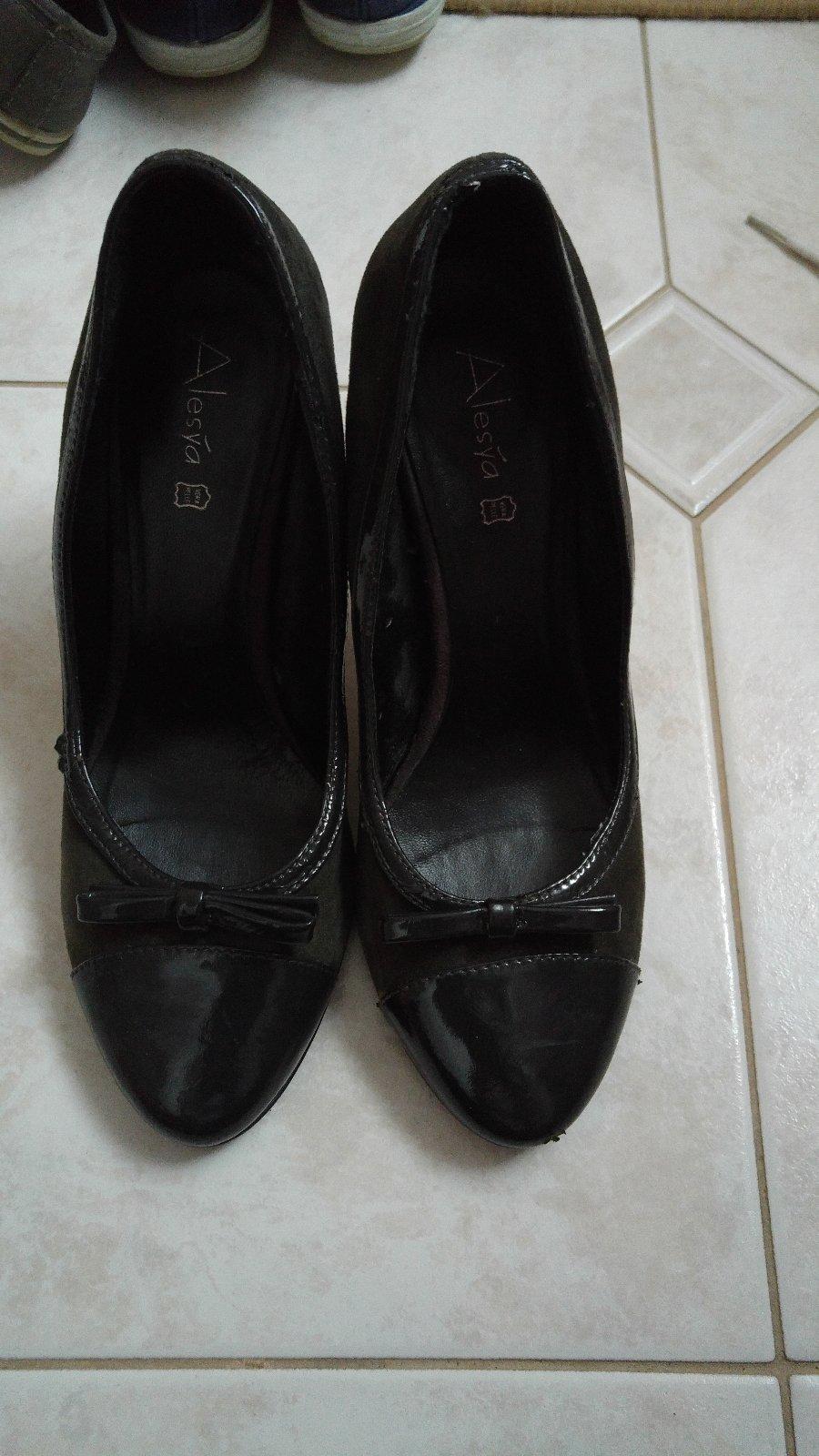 Dámske kožené lodičky v dobrom nosenom stave, len ľavá vpredu trochu skrabnuta