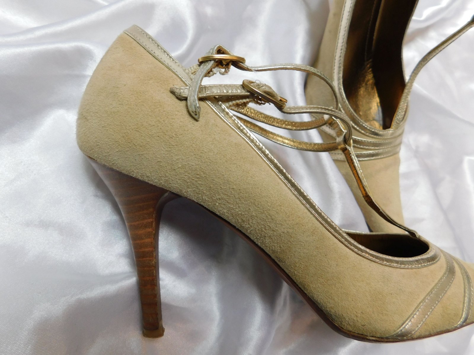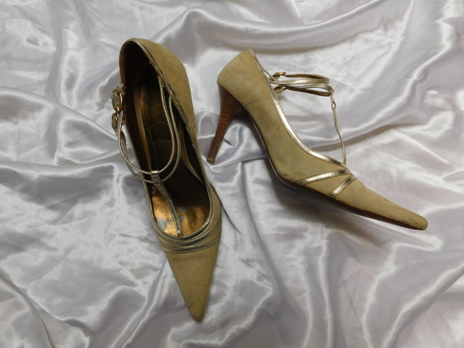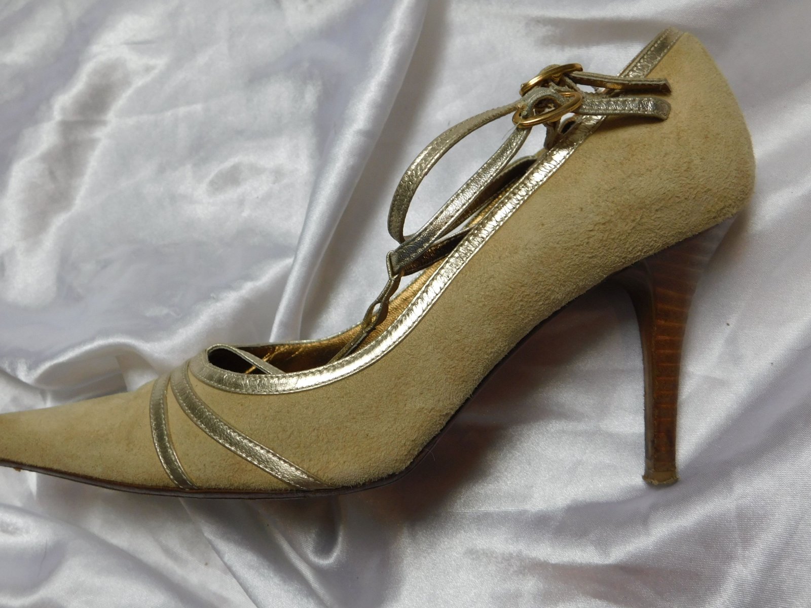 Luxusne kožene topanky,bezovej farby,z velurovej kože,lemovane kožou zlatej farby.super stav.PC 159€. O6