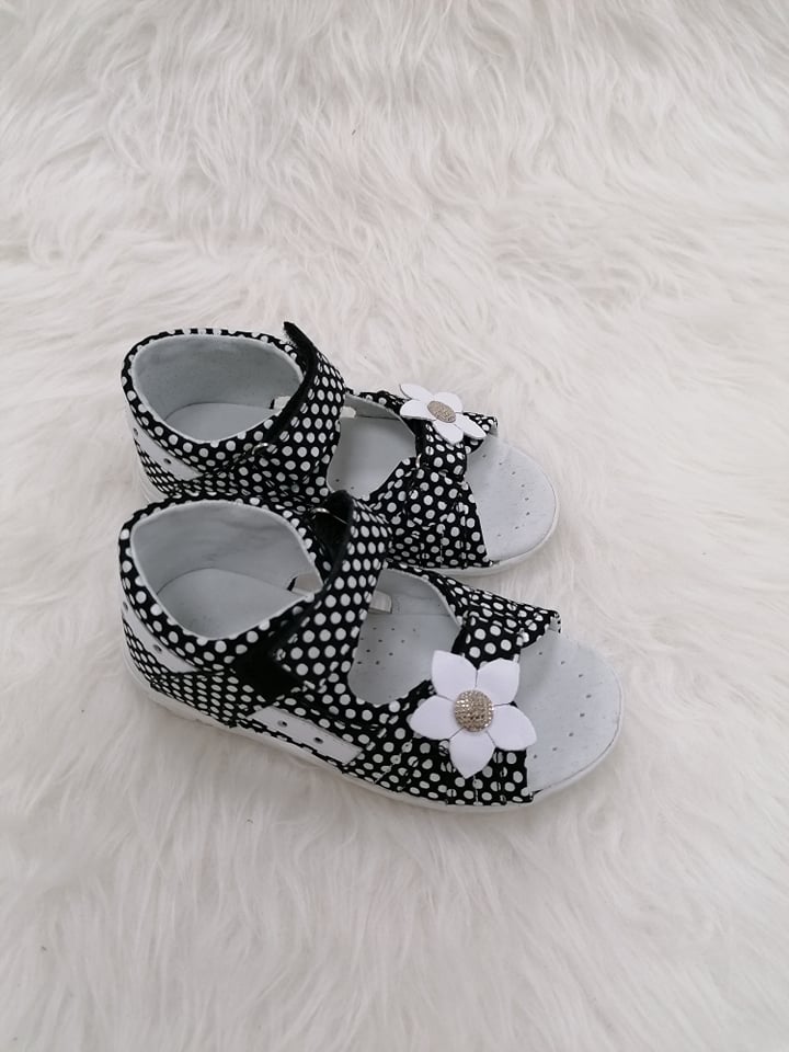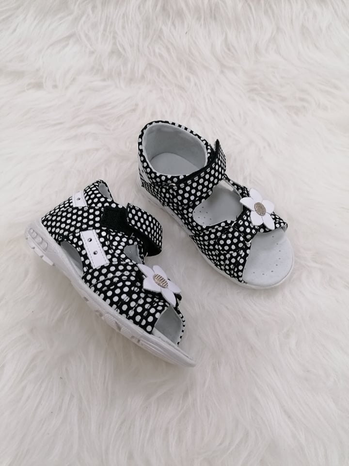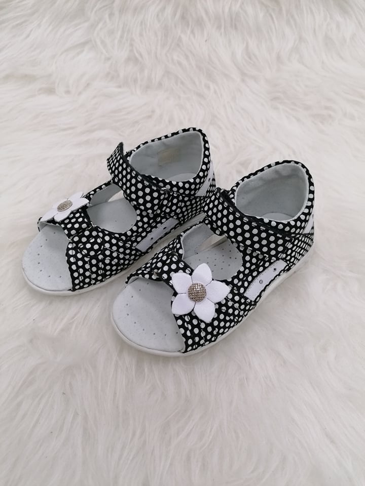 Krásne dievčenské sandále s pevnou pätou a zapínaním na dva suché zipsy, ktorými si môžete regulovať obvod a tvar nohy dieťaťa. Pohodlná mäkká stielka. Značka Kornecki.