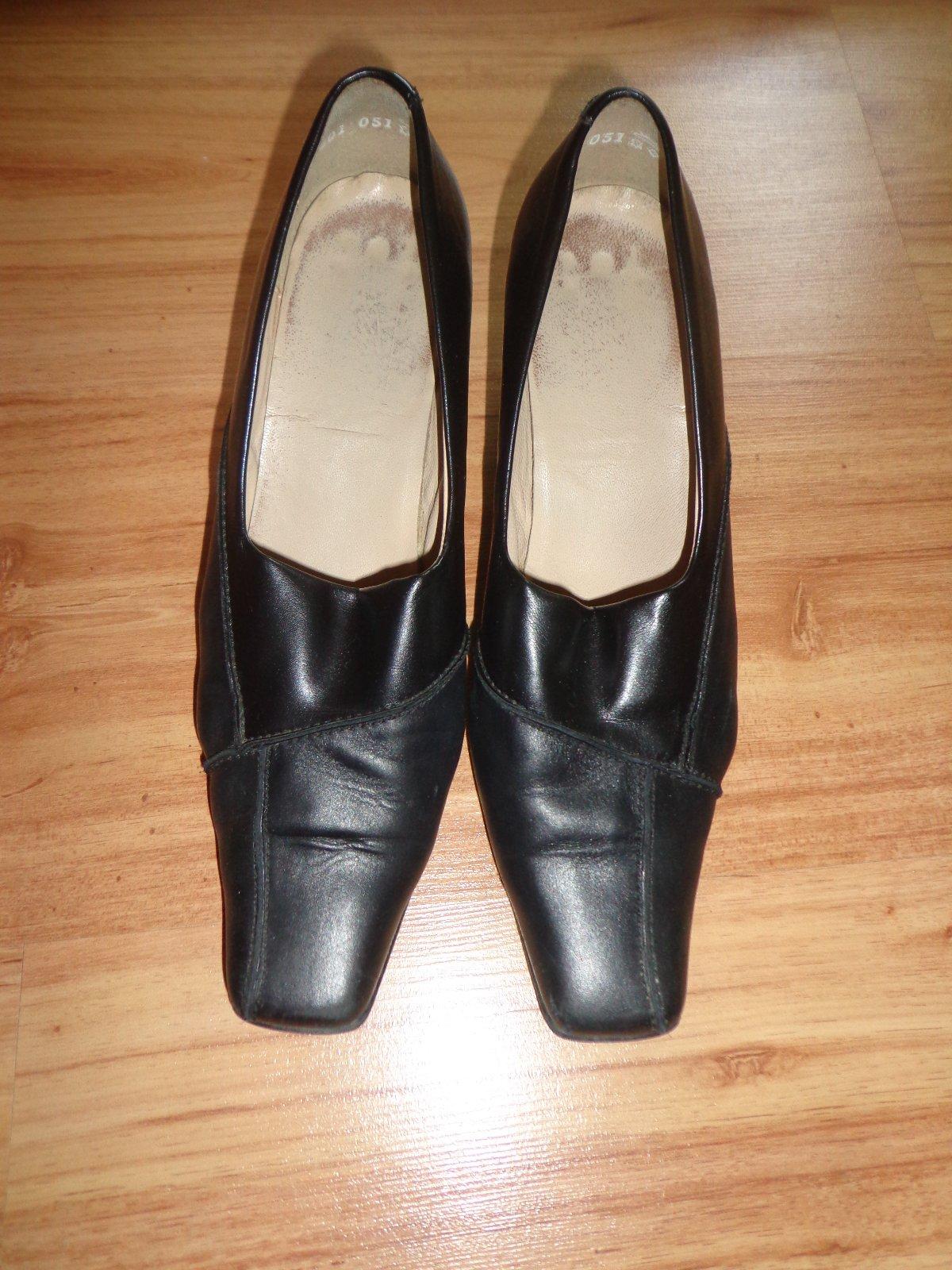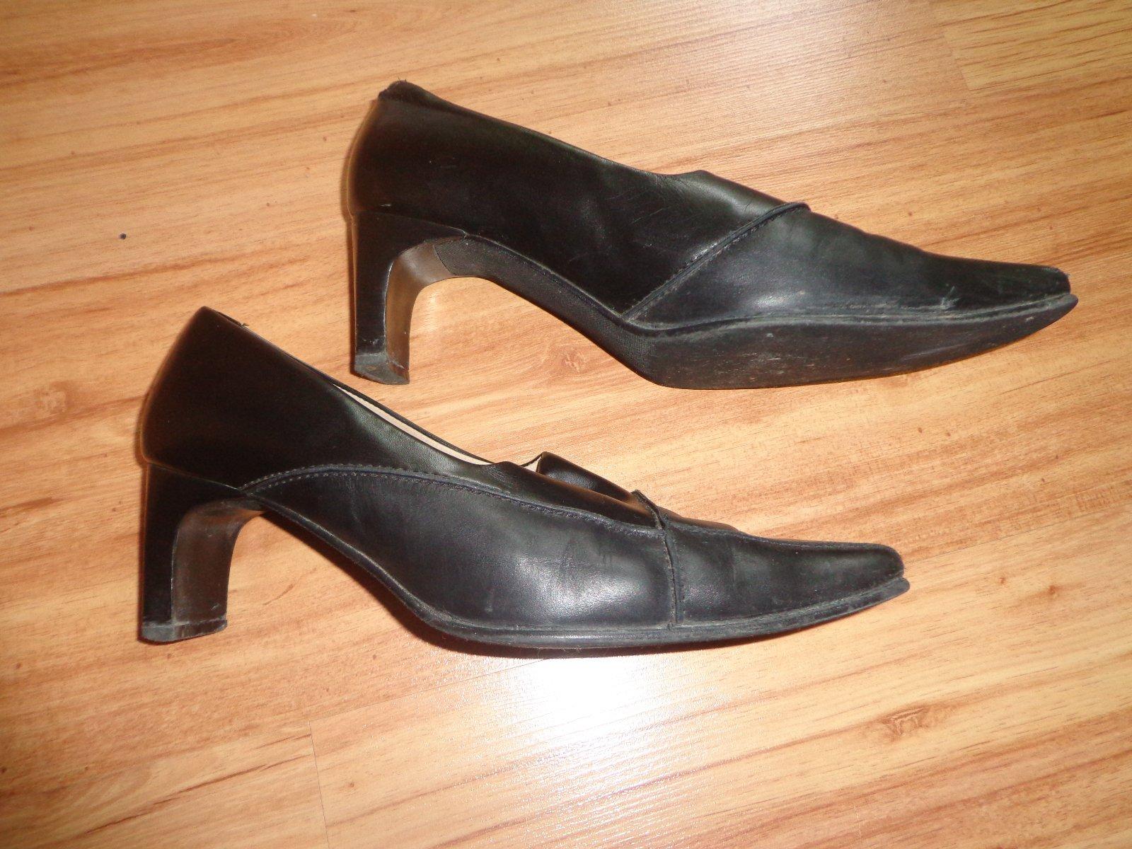 Kožené topánky, okolo nártu je vsunutá pružná elastická, časť, tak dobre držia nohu. Dobrý nosený stav, trošku šuchnuté špice, možno ešte niekomu poslúžia.