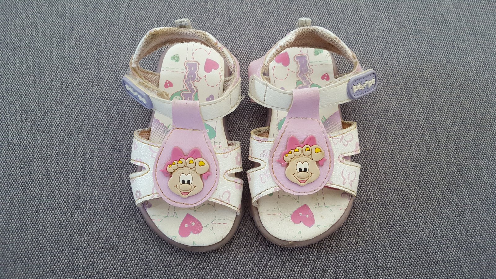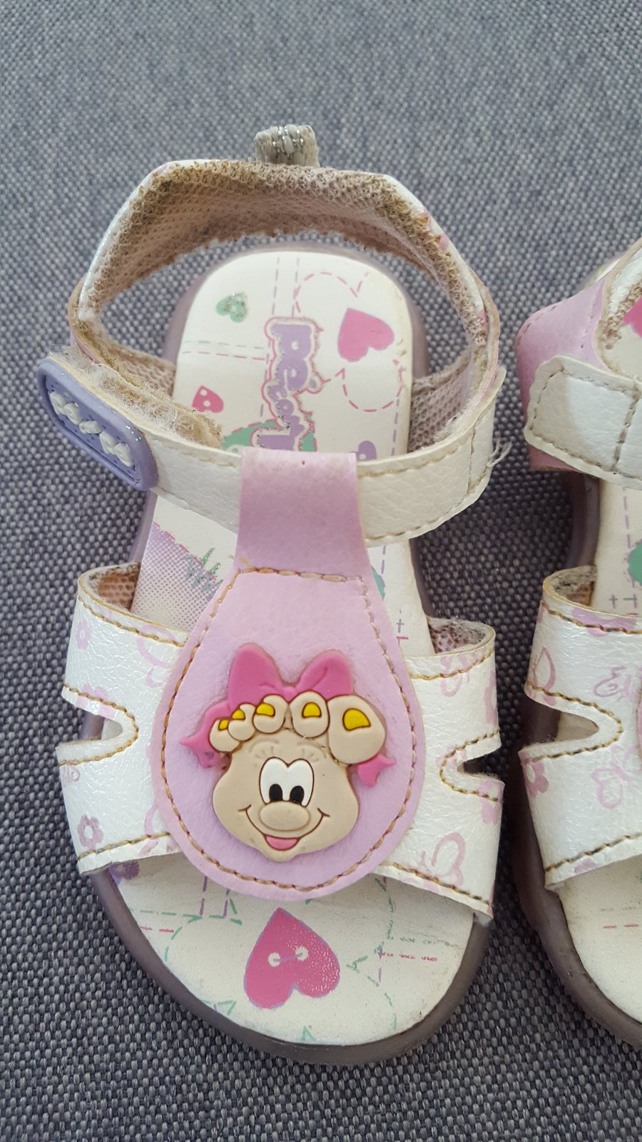 Málo nosené,na jeden suchý zips. Kombinácia ružovej s perleťovou. Vpredu pekná aplikácia. Vnút. dĺžka 12,7 cm.