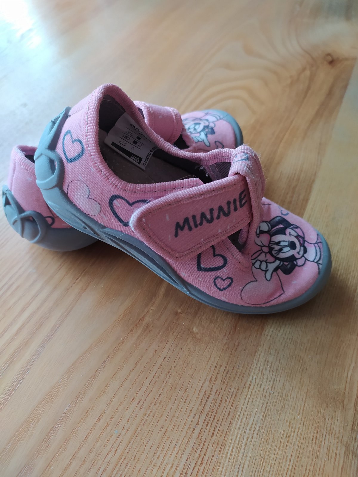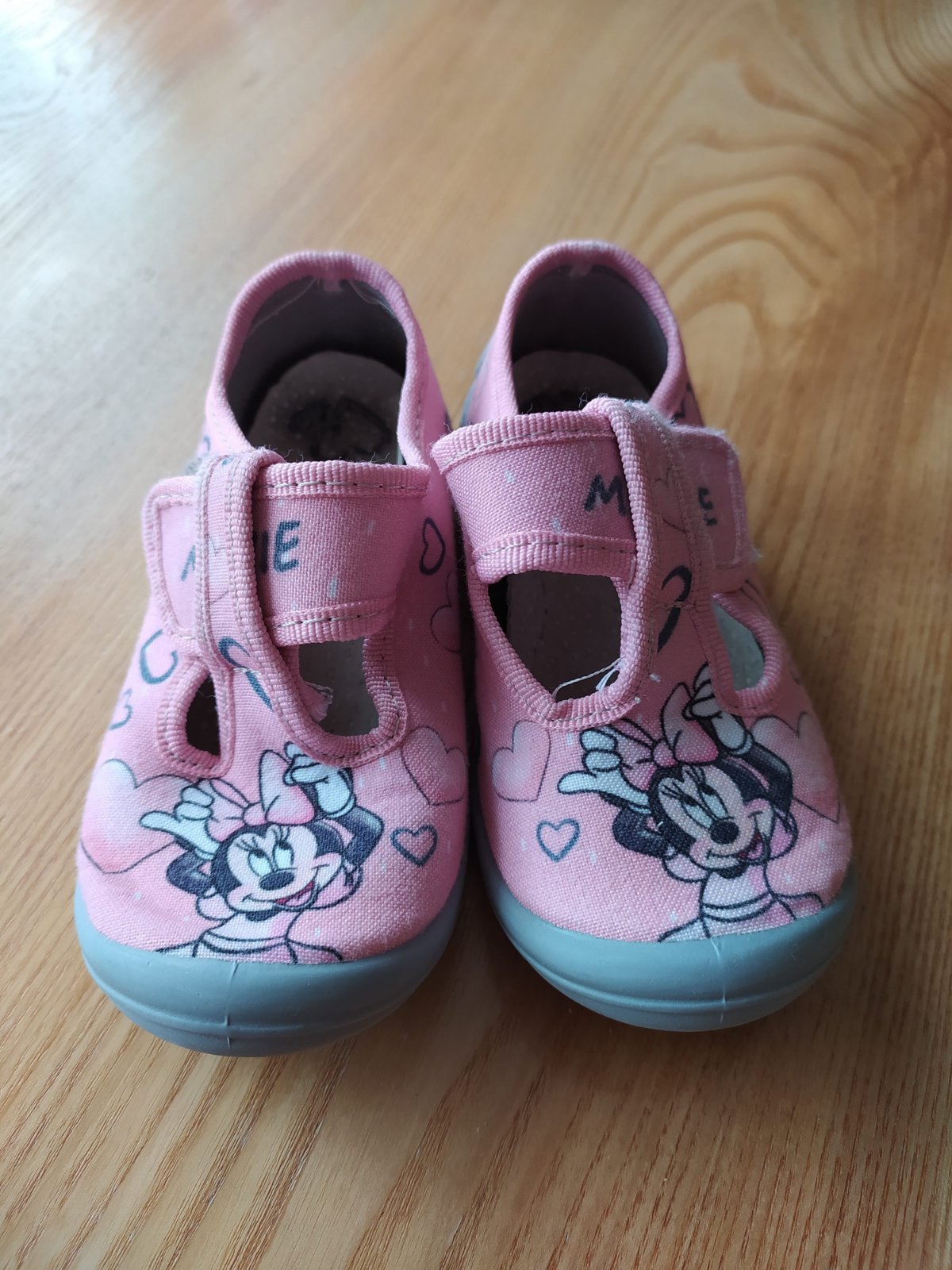 Detské plátené topánočky s potlačou Minnie, zapínanie na suchý zips, vnútorná dĺžka 16 cm